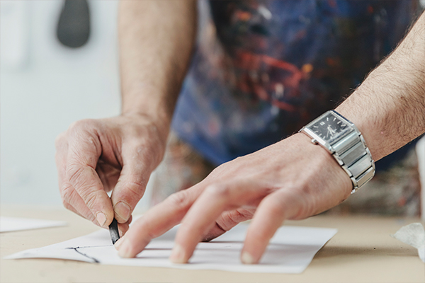 La práctica artística de Rubén Guerrero constituye una investigación sobre los fundamentos de la propia pintura, en la que indaga sobre motivos que van repitiéndose a lo largo de su trayectoria como la bidimensionalidad, la superficie y los extremos del cuadro. Por este motivo, sus pinturas son difíciles de categorizar, evocan estructuras fragmentadas cuya composición artificiosa explora los límites del medio, convirtiendo a la pintura en una disciplina radicalmente contemporánea.