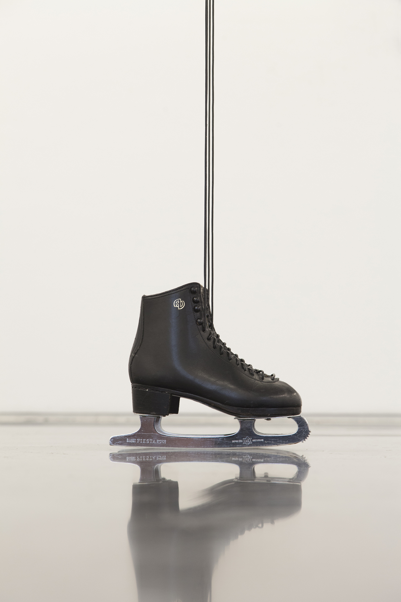 Hanging Figure Skates #38.5. 2015. Used pair of figure skates and black lace. 280 x 30 x 26 cm