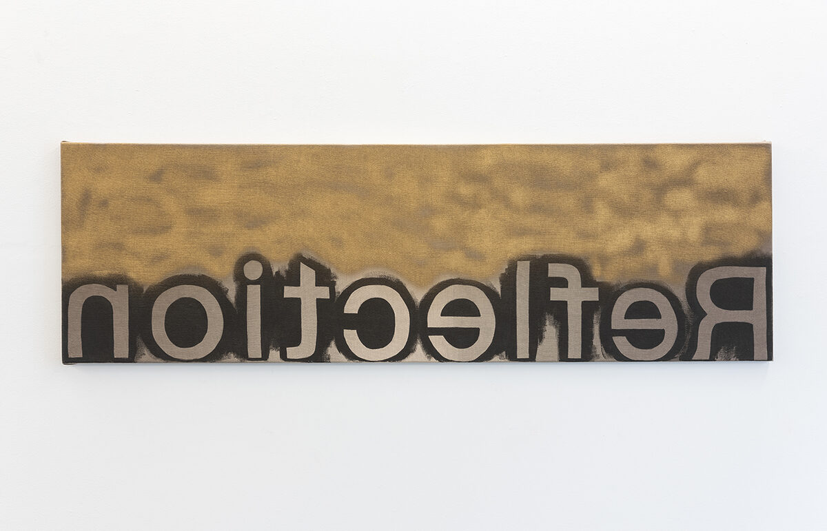 His paintings consist of monochromatic fields that are literally pierced by words, so that the tension between figure and background, as well as the idea of abstract space, further amplifies the poetic qualities of his work. Fairclough’ s painting is human, and this fact is apparent in his usually imperfect strokes and fields of colour, where the manual gesture bursts against figurative logic, introducing chaos beyond the order of the visible.