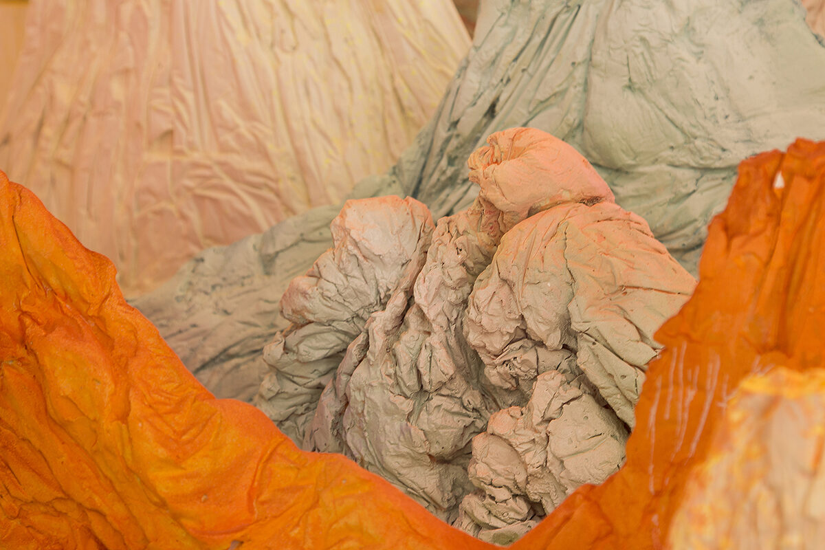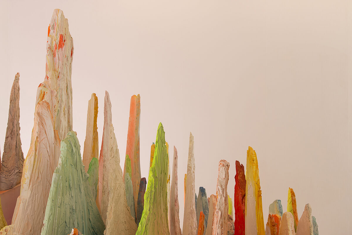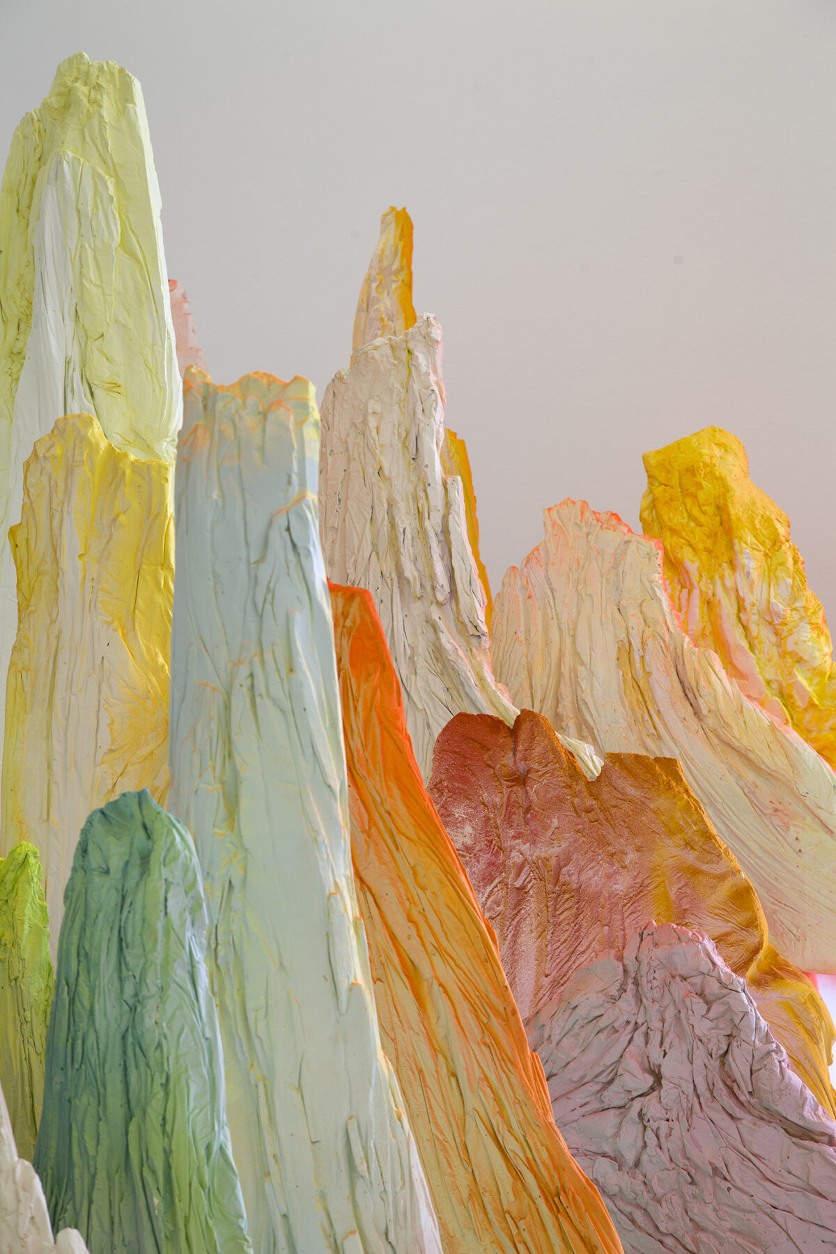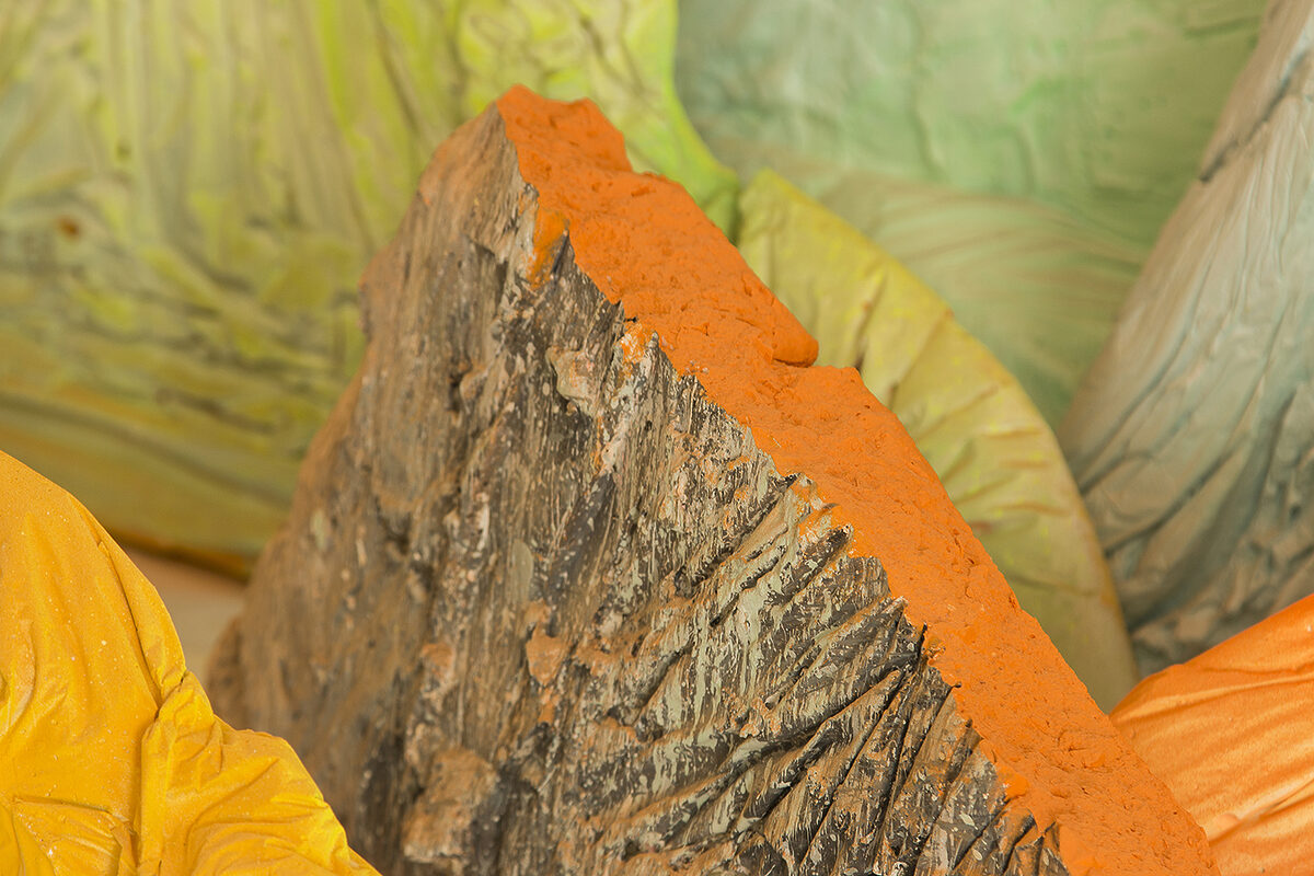 The exhibition Possibility of Landscape is the result of a working process that has taken place in the gallery space itself, during which the artist has physically and conceptually moved part of her studio to the Boiler Room, taking over the space and generating a concrete and unique installation through the experiential. Her pieces are recognised between the immutable of nature and the manufacturable of consumer materials, generating a very characteristic aura.