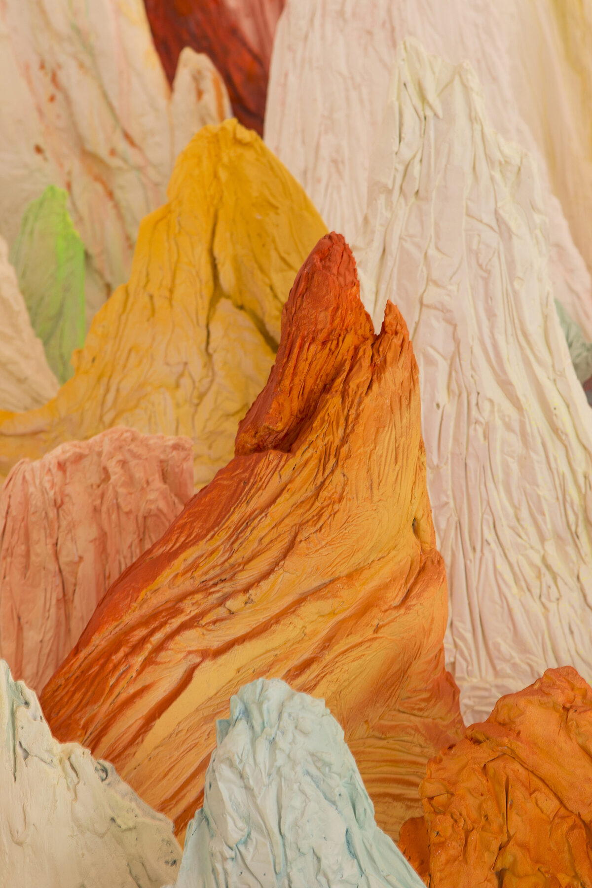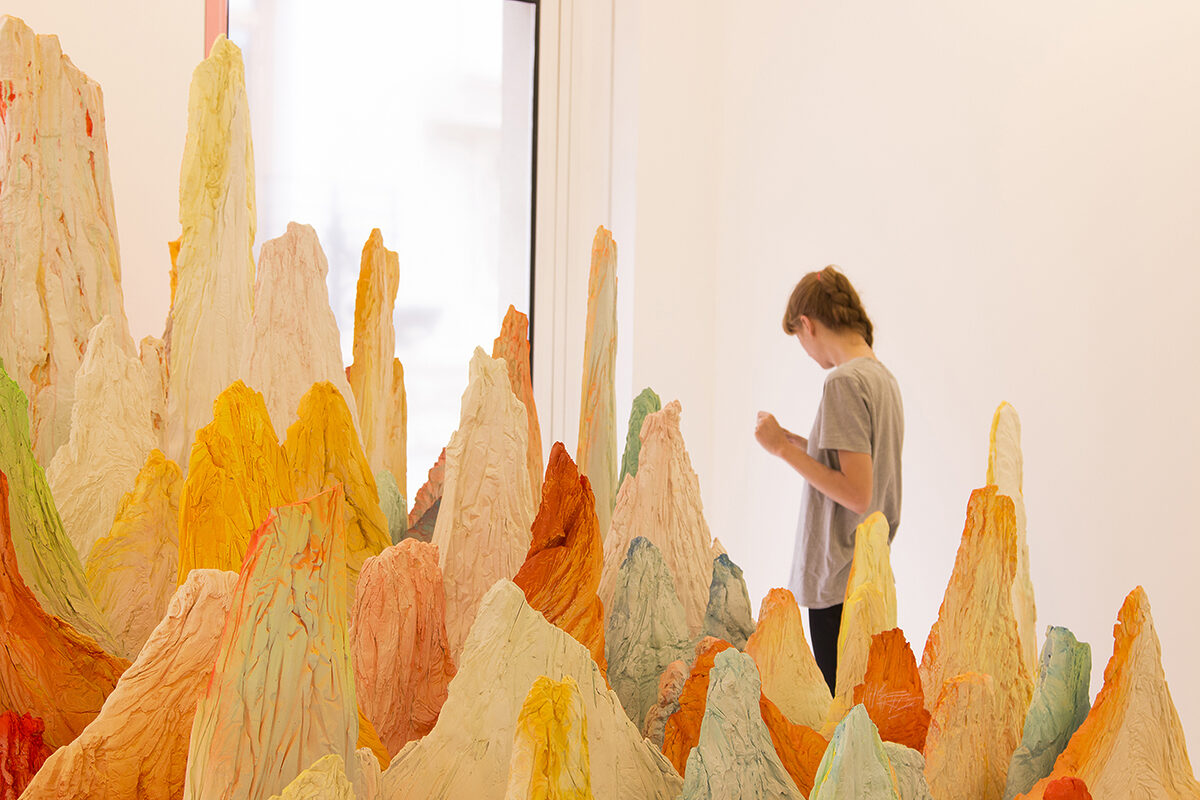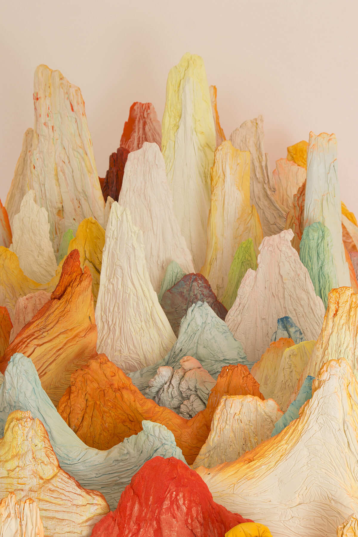 The exhibition Possibility of Landscape is the result of a working process that has taken place in the gallery space itself, during which the artist has physically and conceptually moved part of her studio to the Boiler Room, taking over the space and generating a concrete and unique installation through the experiential. Her pieces are recognised between the immutable of nature and the manufacturable of consumer materials, generating a very characteristic aura.