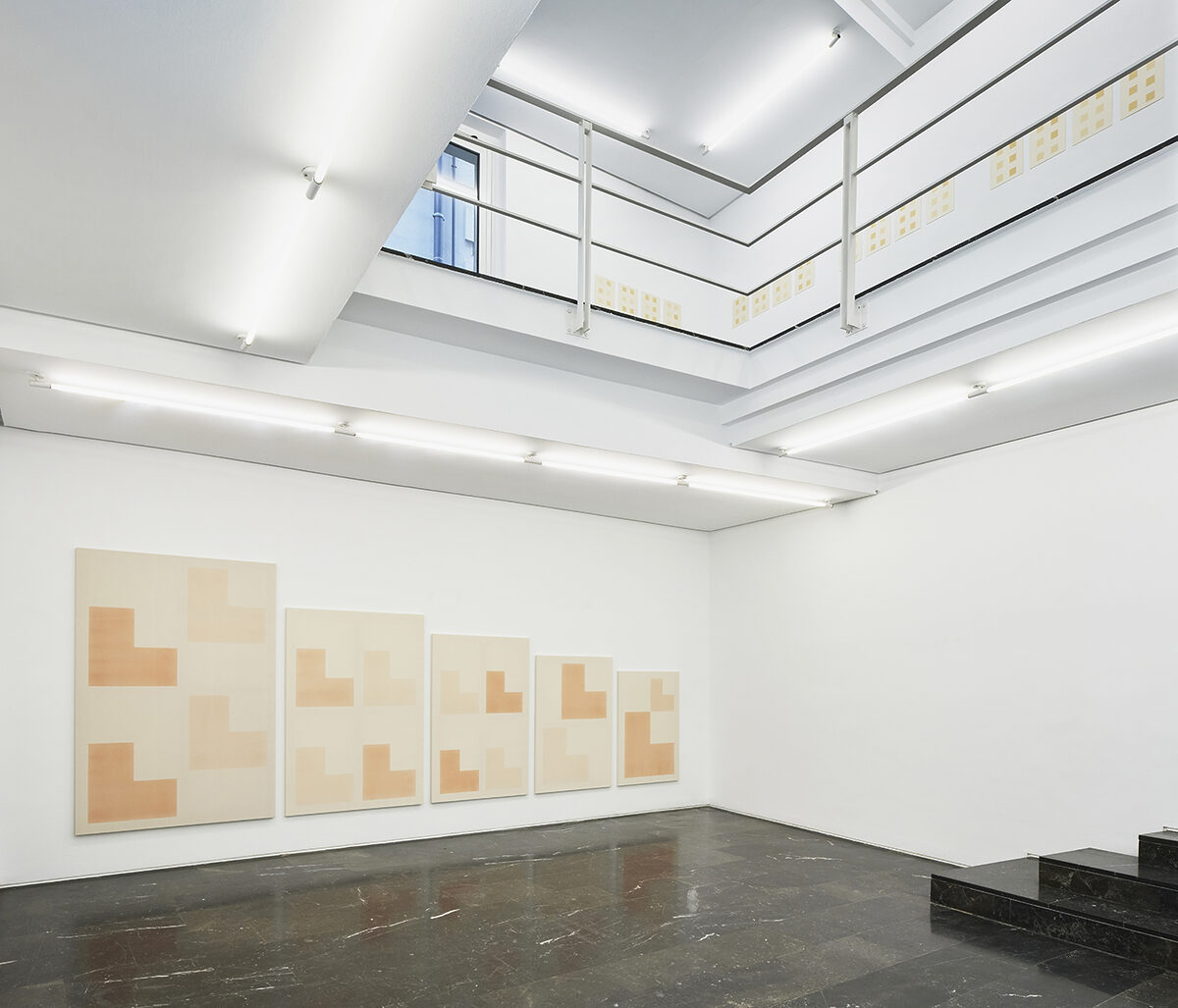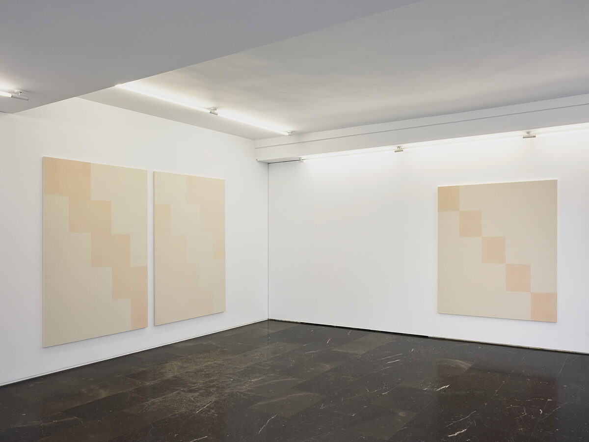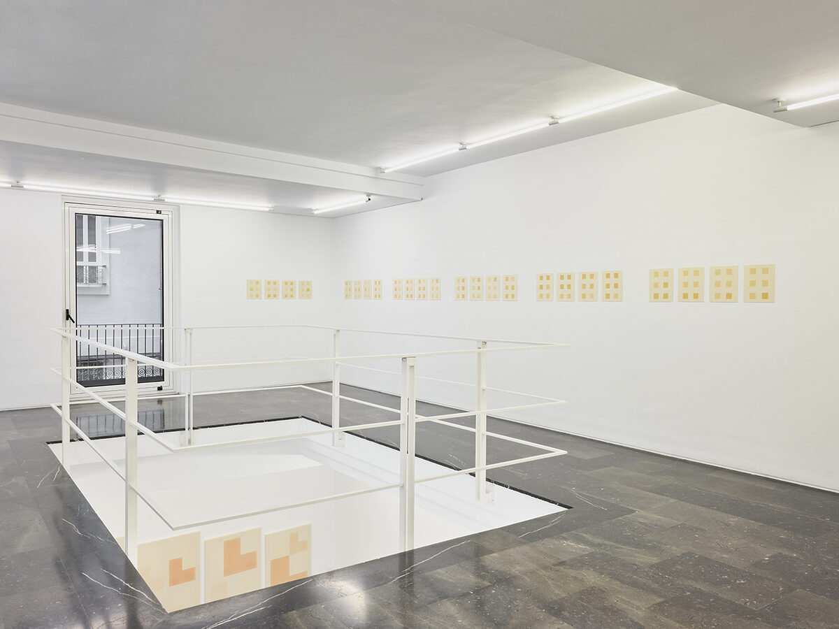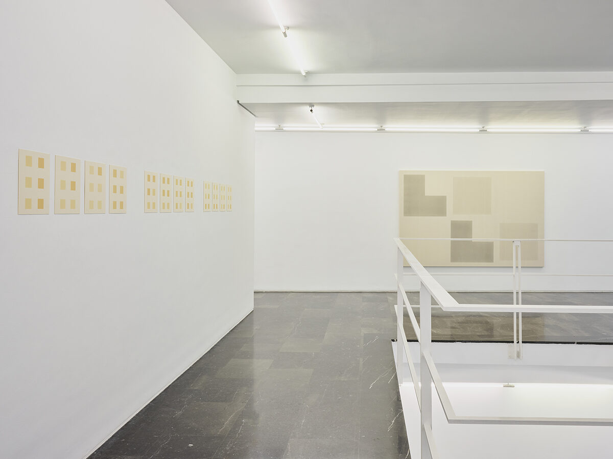 The exhibition opens a series of windows in the four rooms of the gallery. They are windows open to slow landscapes, made of negotiation between geometry and tremor. Color appears for the first time in the work of Manu Blázquez, but it is a color that comes not from the stain but from the line, earthy colors that are saturated only by the insistence of the line. The relationship with the material provokes the transfer of formats: drawing with engraving ink on the canvas of the painting, stains with line, engravings made of sun: photo-graphs? An incision of drawing repeated on the surface of the painting that proposes above all the measure of time of a stroke that is never a contour. The repeated gesture of marking the surface of the support to confirm that what is traced is made of time: they are lines but they could be seconds. The apparently ordered form that constructs a time of execution. The angle appears as the possible beginning of any arrangement of space, the domestic division between the horizontal and the vertical. It is the opening of the wall through the drawing/synopia of the fresco, like those of Fra Angelico in San Marco. The wall opens to other times, folds and speeds. We see the window, but we continue to see also and above all the wall that contains it. The pieces gathered in Corte de bosque are a sort of manual tomography on an ever-human scale of encounters between the formless and the block, a principle of accumulative geometry that points out first spaces. It is necessary to intuit in the out-of-field of the windows of Blázquez’s pieces the ascetic practice of a work of contemplation, of an almost meditative scratching, which demands a spectator at the same speed.