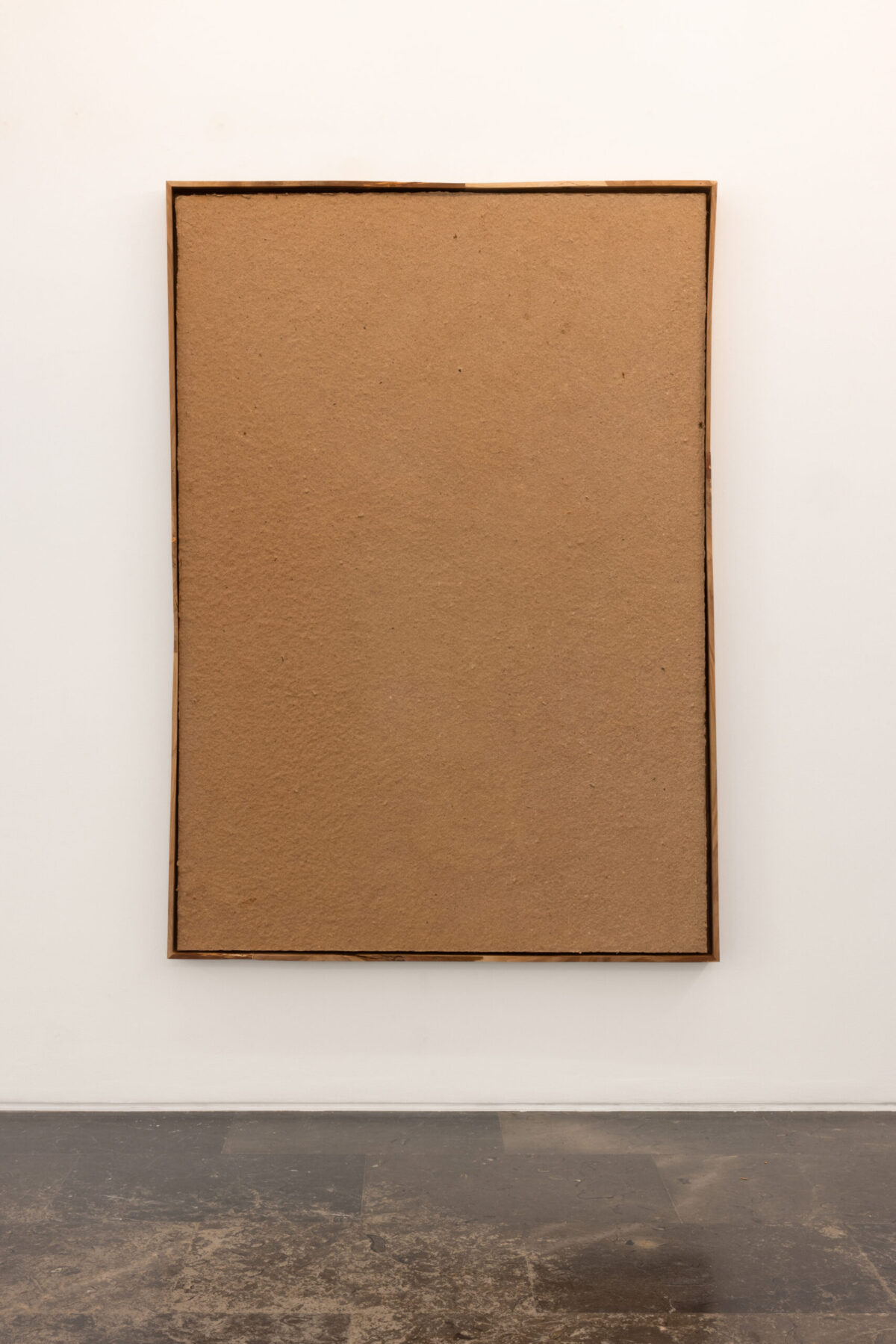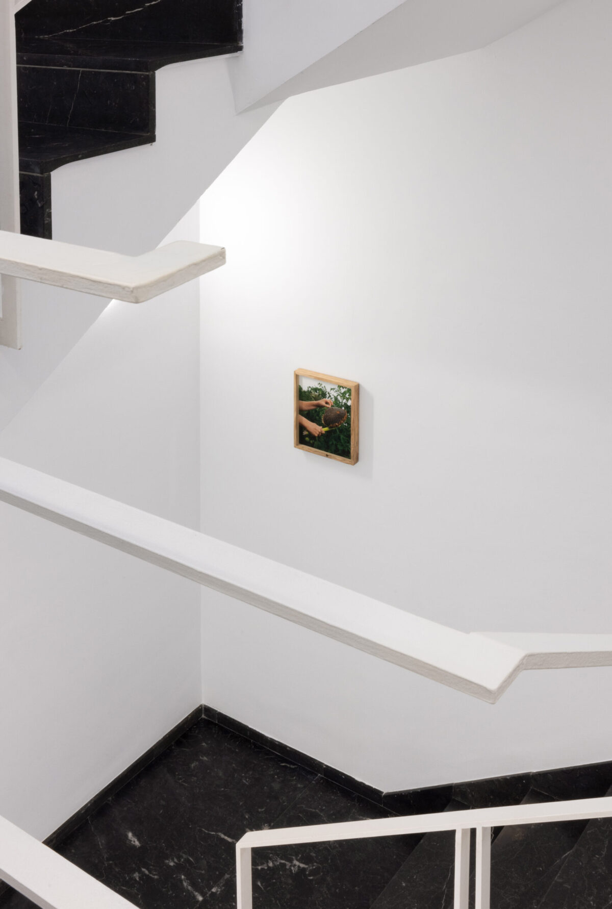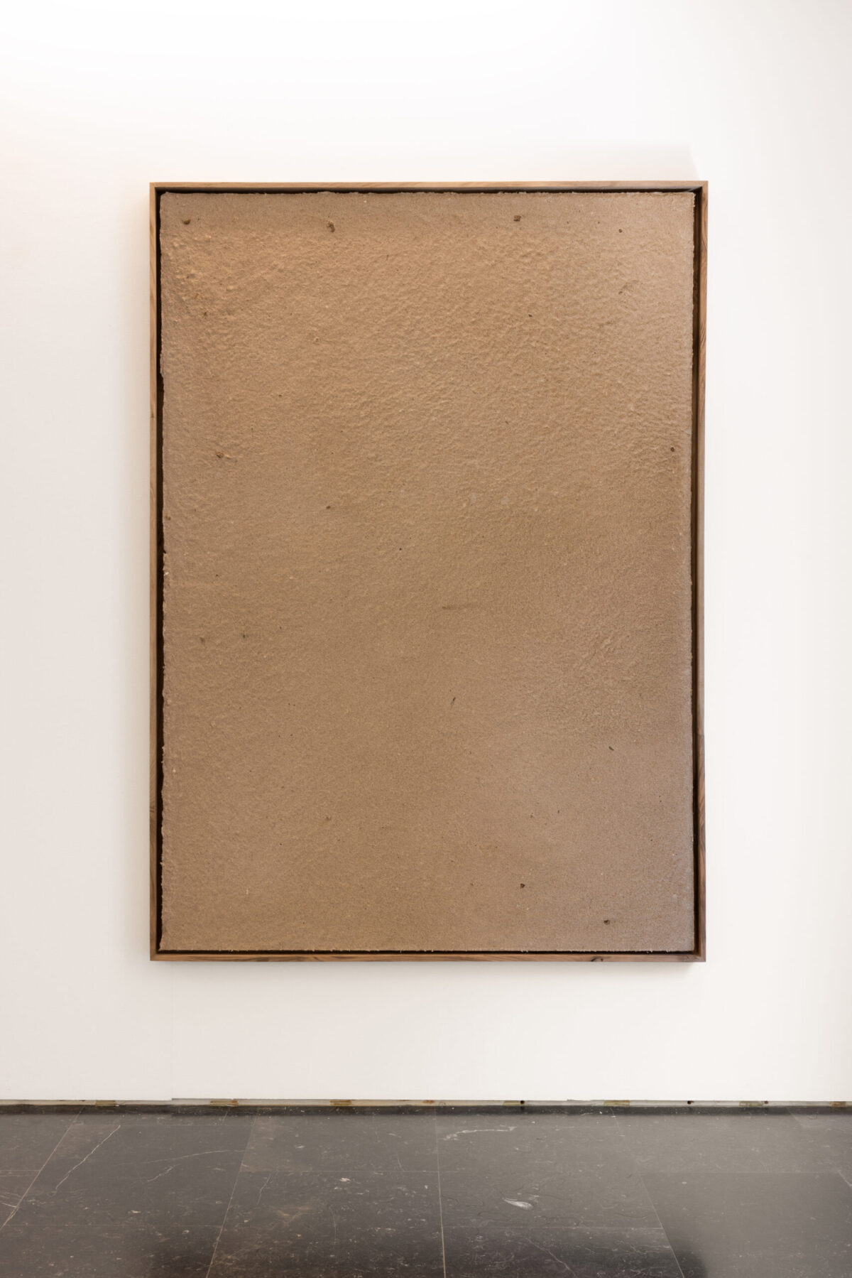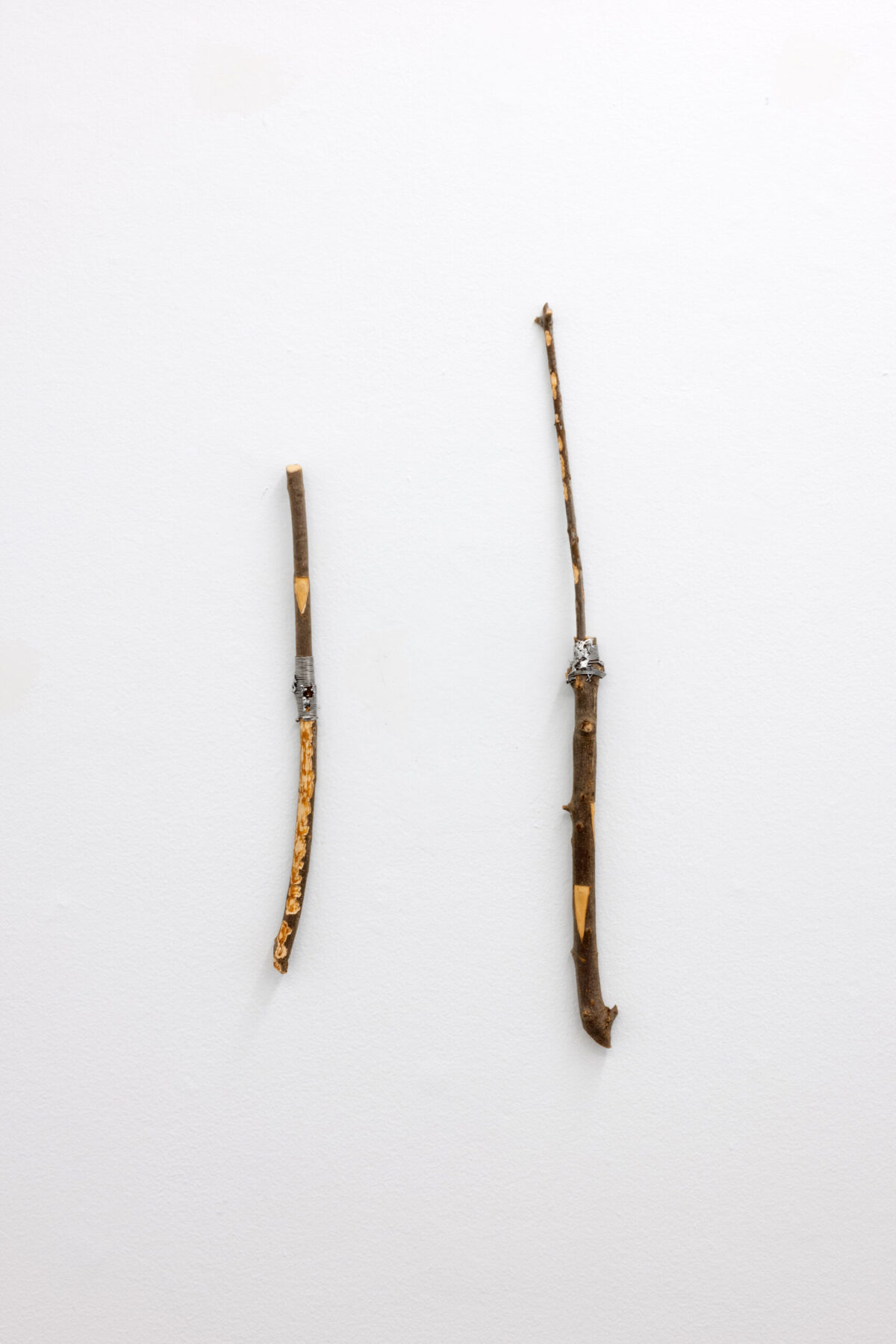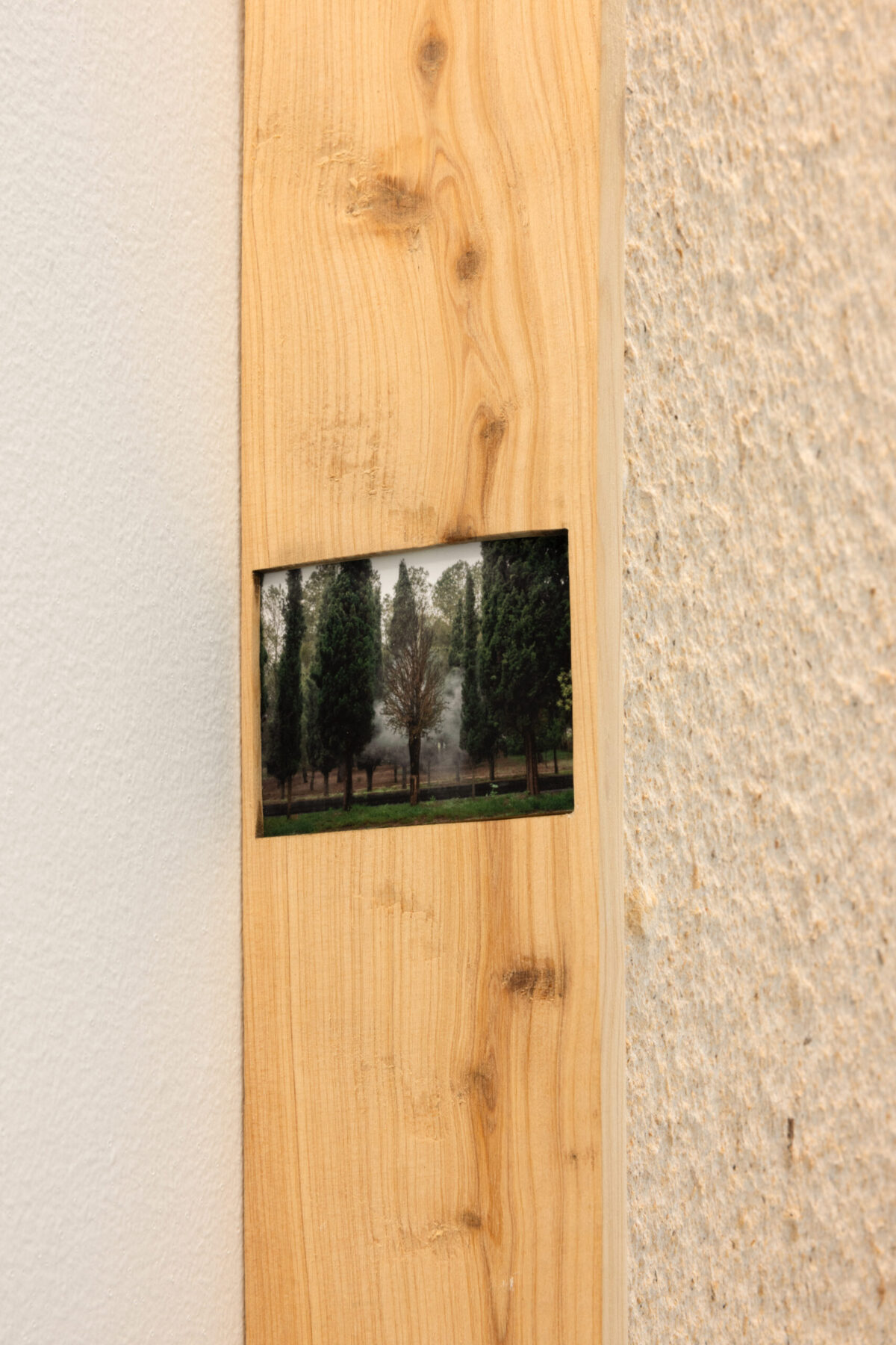 and the soft, keratin and cellulose, orality and flesh. Palau uses sculpture to reflect on the proximity between patterns in nature. This recontextualization of the link between nature and knowledge also connects with testimonies of healing that some people have shared with the artist, which are materialized in some pieces. She also works with trees, an element that in Palau’s rural community has been treated as a subject and witness to the link between generations. The artist has created a repository of local species, which she translates into a series of papers in the gallery, framed with wood from the trees to which they refer. She has also been involved in practices aimed at caring for trees, such as pruning. These reveal the fragility