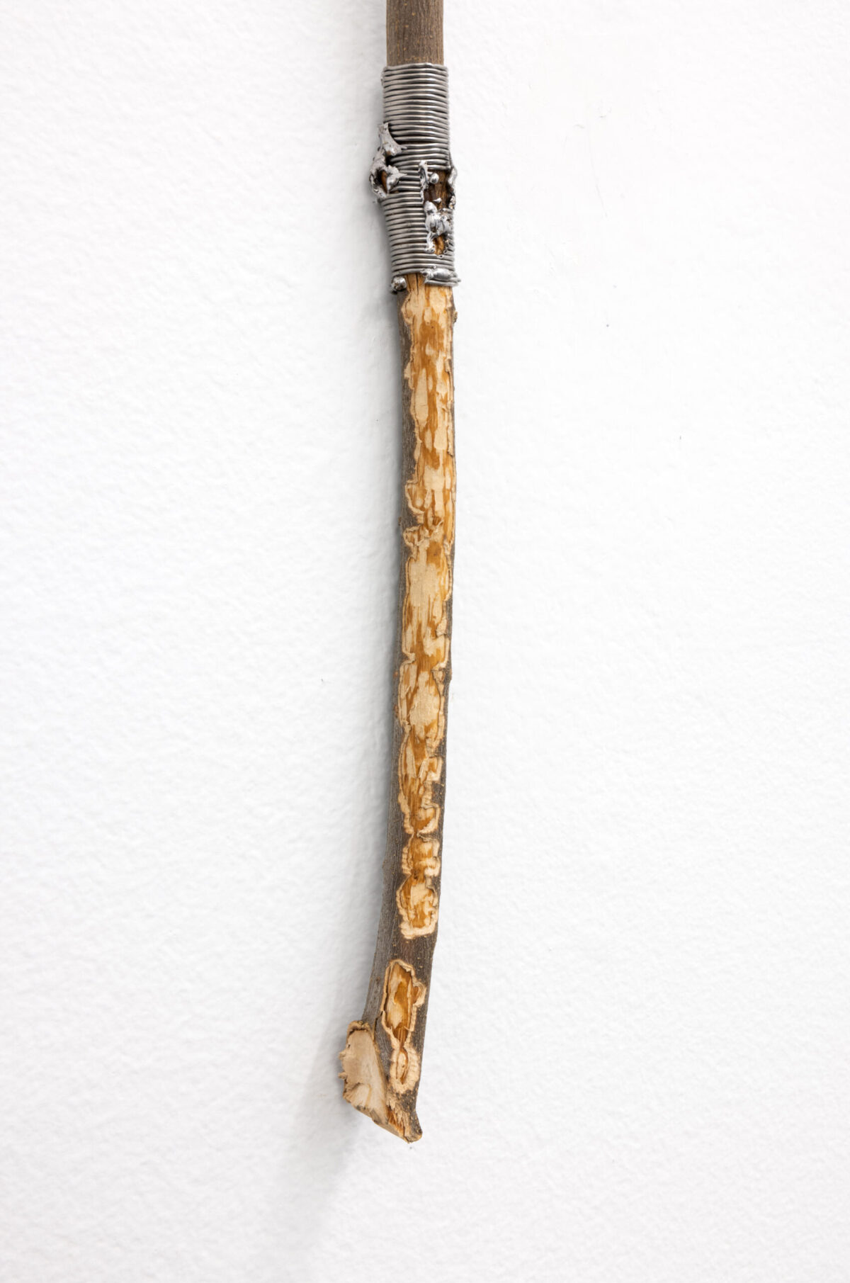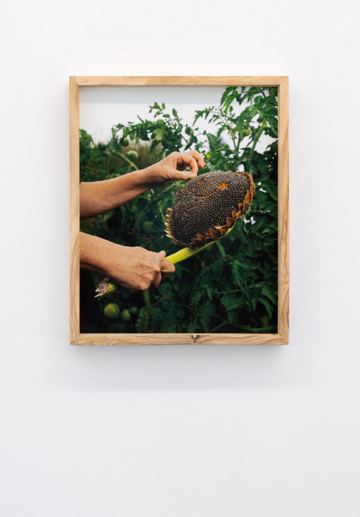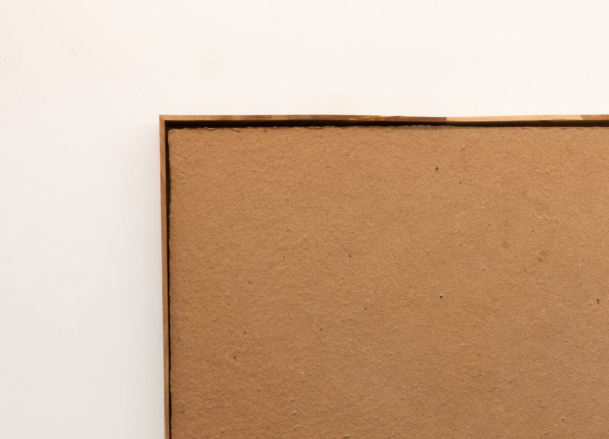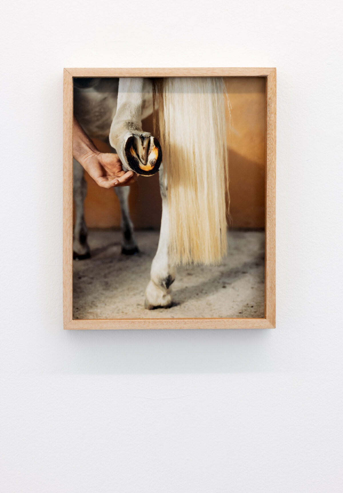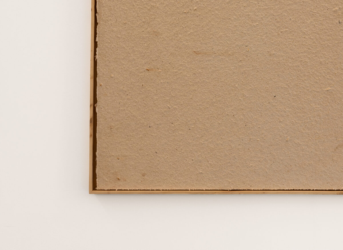 and the soft, keratin and cellulose, orality and flesh. Palau uses sculpture to reflect on the proximity between patterns in nature. This recontextualization of the link between nature and knowledge also connects with testimonies of healing that some people have shared with the artist, which are materialized in some pieces. She also works with trees, an element that in Palau’s rural community has been treated as a subject and witness to the link between generations. The artist has created a repository of local species, which she translates into a series of papers in the gallery, framed with wood from the trees to which they refer. She has also been involved in practices aimed at caring for trees, such as pruning. These reveal the fragility