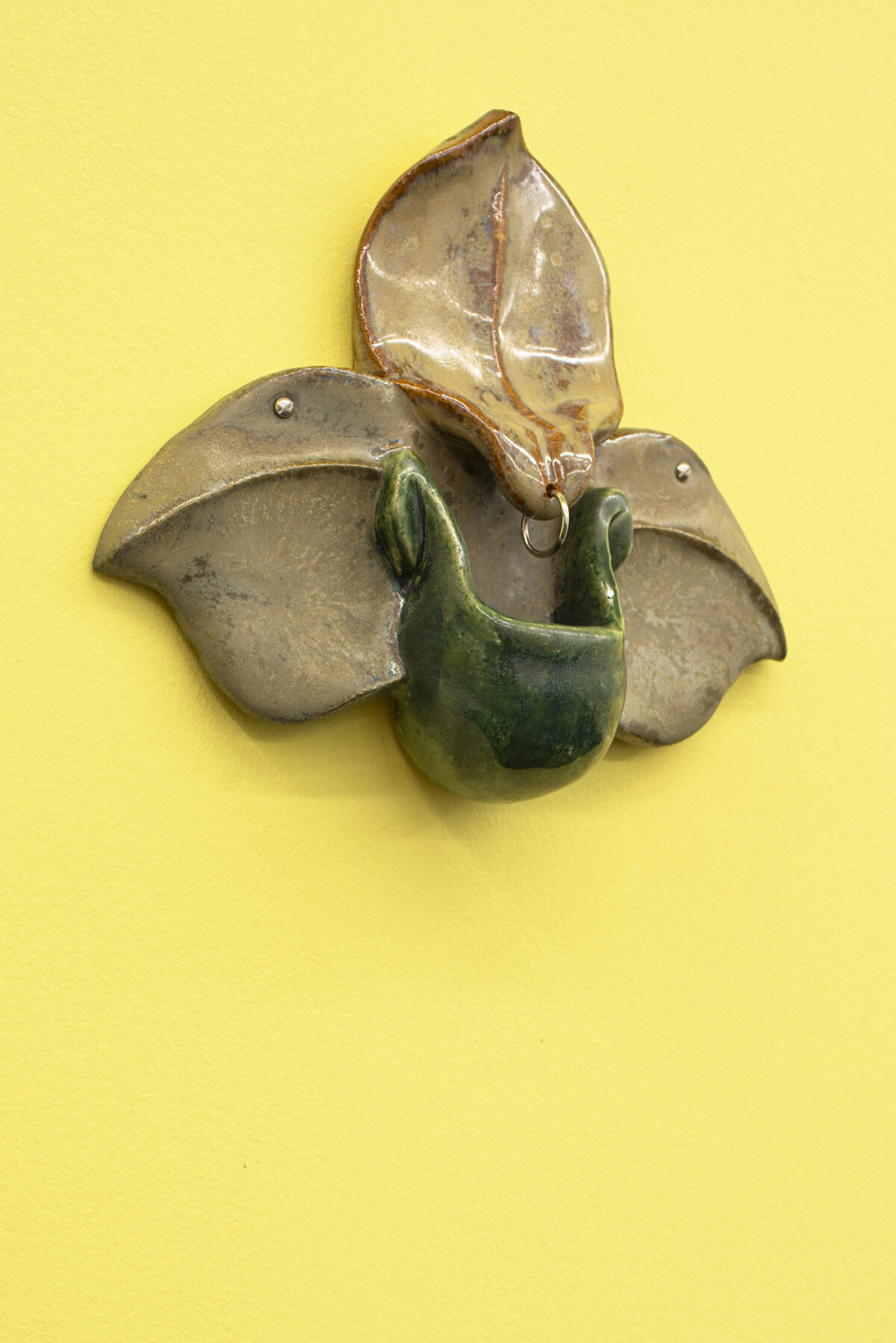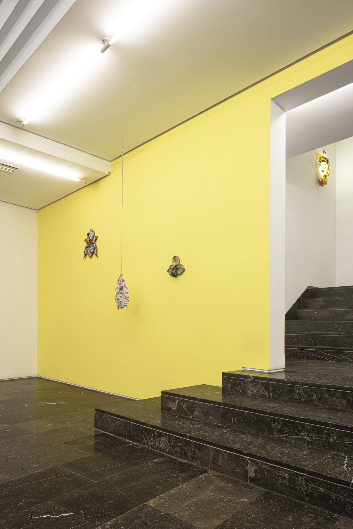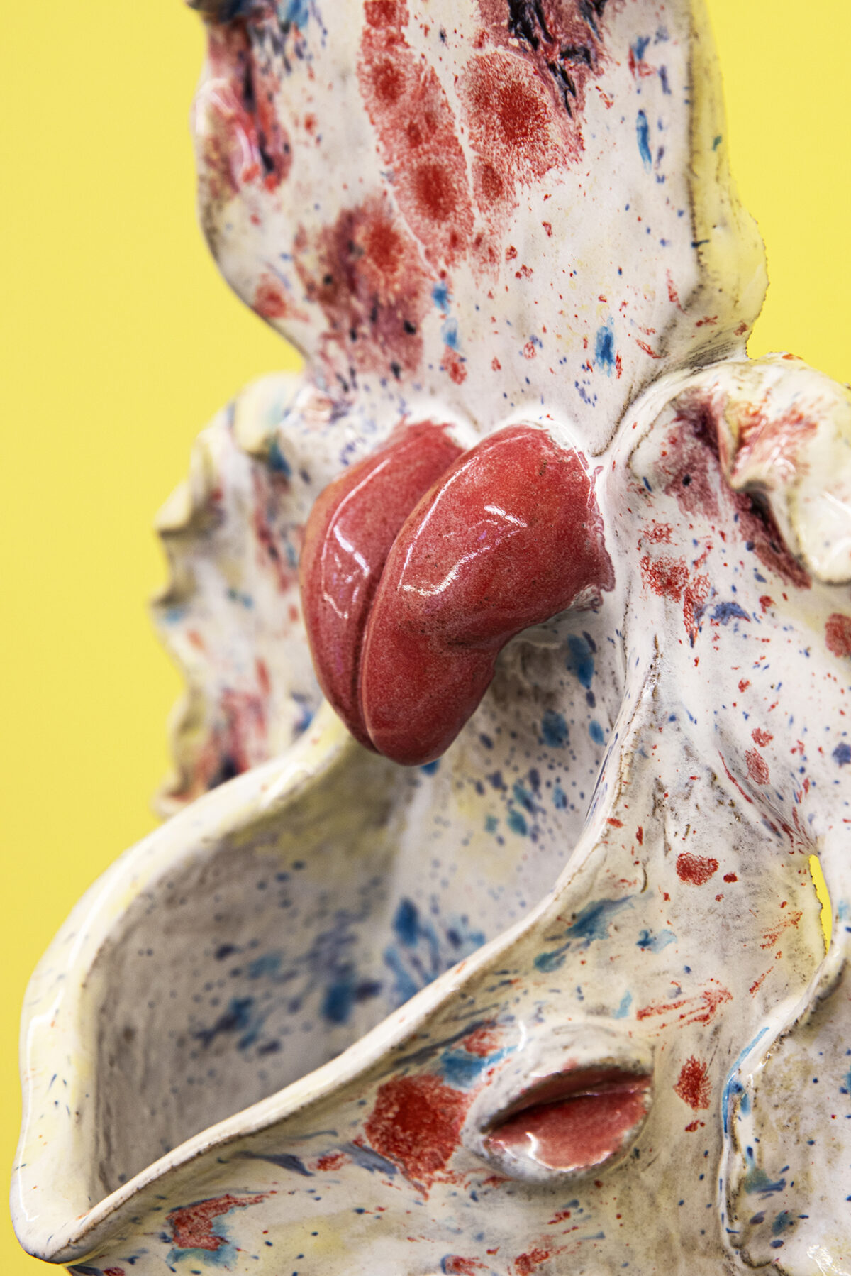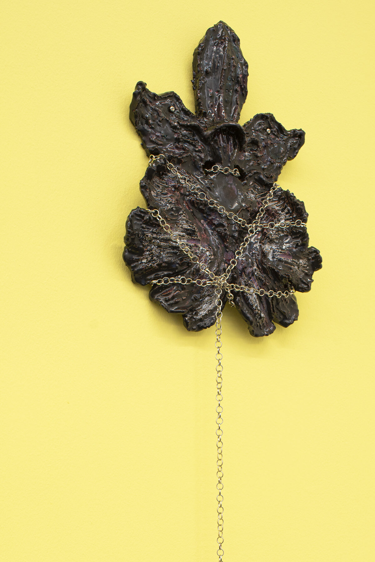 Nature is disclosed as a disquieting place where the unexpected can happen. Kristin Wenzel conceived the series Wild Orchids while out walking in the countryside during the height of lockdown, in which socialization and flirting were replaced by the exuberance and mystery of forests and their dwellers. Here we can see a selection of pieces from that series, made up of glazed ceramic sculptural works emulating orchids with colourful fleshy tongues and water dripping in their cavities. Inert, fruitless objects, with neither sap or bees inside, but which nevertheless spur desire and imagination, at once attractive and repellent.