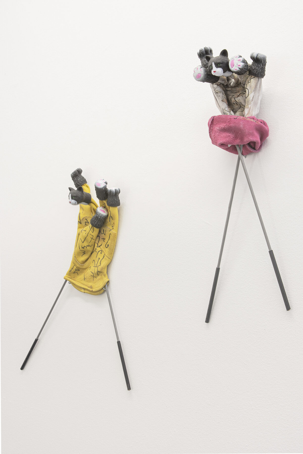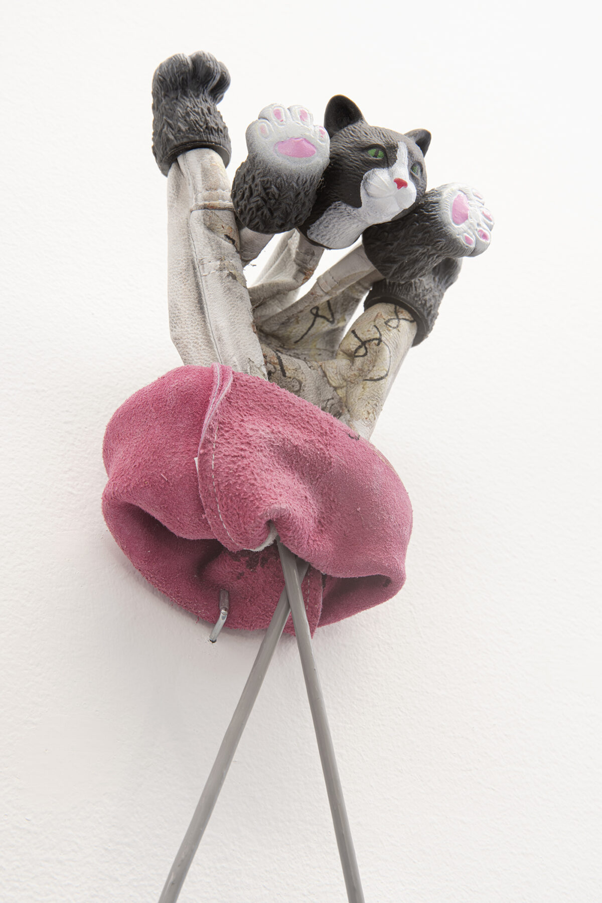Leticia Ybarra is a poet, artist and curator. Her more recent works are the result of investigation into formal and poetic aspects of discourse and the displaced gesture as a possible queer strategy, opening up a surplus of meanings. I Shouldn’t Say Cat combines two strange objects that recall a ventriloquist’s glove puppet whose body supports the head and paws of a cat. With these elements she activates different stories centred on the figure of the famous dancer Vaslav Nijinsky, a fascinating character whose relationship with Diaghilev, the director of Ballets Russes, as well as his boss and lover, was underwritten by a confusion between power and submission, something very much to the fore in ventriloquism which, in turn, creates an accumulation of desire and eroticism which the dancer rendered on stage in a homo- erotically charged dance which the audience contested by calling him “half- cat” and “half-puppet”.