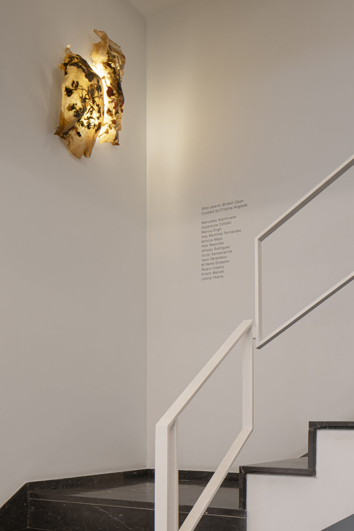 Broken Open proposes a whole series of disparate narratives arranged around the space with the intention of short-circuiting the automatic reflexes of our understanding process, to indulge in the surplus of meaning and the ornamentation of the narrative knot. A magical anarchism of sorts full of crossover symbolism that aspires to elude the excessive clarity of unequivocal explanation. The works invite a loitering, full of ambiguity and layers, that scratches the surface in order to see what is beneath the outer communicative layer of the pieces; a walkthrough that comes and goes, up and down, and starts all over again.