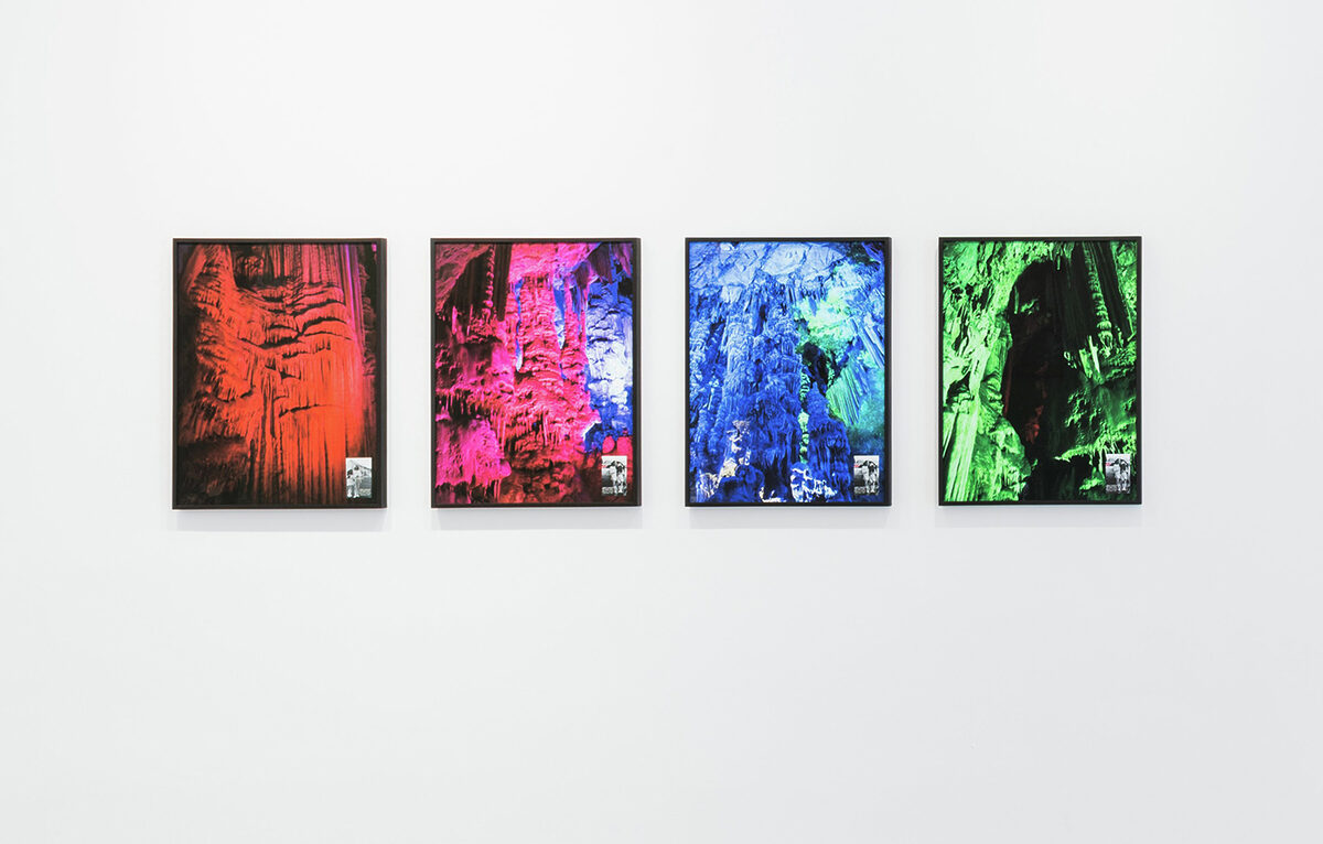 Overpowering vital forces are not only channelled through natural phenomena (flora, fauna, bodies), but also ordinary objects that can undergo all kinds of enchantments and be modified with the right combination of words. For Marius Engh, things have the power to retain and offer information, but also to generate new readings in other contexts and, in turn, to produce displacements of official cultural narratives. On this occasion he presents four photographic images from the series Double Fantasy, a title borrowed from the seventh and final album made by Yoko Ono and John Lennon in 1980. The couple are photographed in Gibraltar on their wedding day in 1969, in a small stamp in each photo in the series, where the rough, uneven interiors of caves dyed in colours and highly marked textures transport us to another parallel reality.