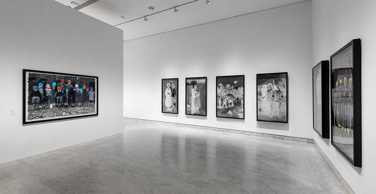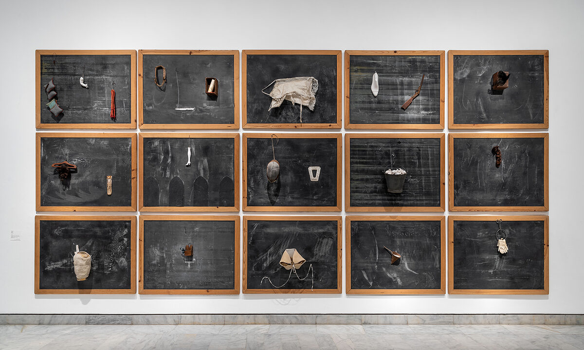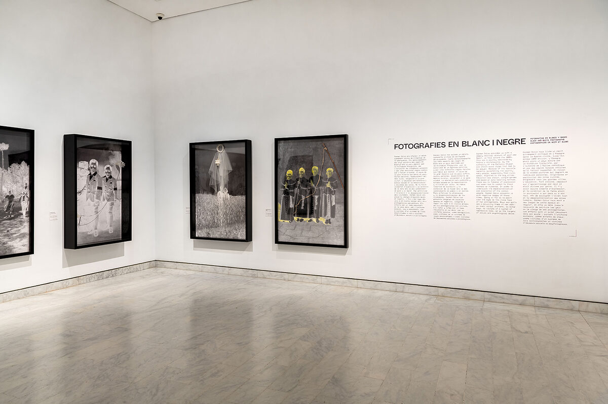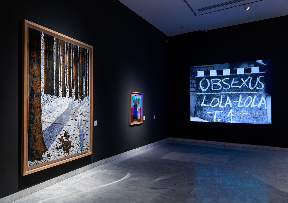Carmen Calvo (Valencia, 1950) es una de las artistas visuales más importantes de nuestro país. A través de su obra, indaga de una manera crítica, a la vez que poética, en los vestigios del pasado y en la memoria de nuestro país. Calvo ha llevado a cabo múltiples exposiciones y ha sido objeto de un gran número de reconocimientos y encargos públicos. Por ejemplo, en el año 1997 representó a España, junto con Joan Brossa, en la Bienal de Venecia. Entre sus exposiciones retrospectivas encontramos la del Museo Nacional Centro de Arte Reina Sofía (2002) y la de la sala Kubo Kutxa de Donostia (2019), así como la reciente gran exposición que ha preparado el IVAM (2022). También ha creado varias obras para espacios públicos, como el techo de la escalera del palacio de Benicarló, sede de las Cortes Valencianas (1994). En 2013 se le concedió el Premio Nacional de Artes Plásticas, en 2014 fue nombrada académica de la Real Academia de Bellas Artes de San Carlos y su más reciente reconocimiento fue en 2020 al recibir el Premio Julio González. Tras las series Escrituras, Paisajes y Recopilaciones, realizadas con pinceladas de arcilla, creó bodegones con formas abstractas de yeso, hierro y arcilla, y trabajó con objetos hallados repletos de una gran carga emocional. Más tarde pasó a utilizar el medio fotográfico, con ampliaciones de fotografías de los años cuarenta, cincuenta o sesenta que manipula con pintura y con objetos como pueden ser cuerdas, cintas, manos de cera, cabellos, máscaras y agujas. Son retratos colectivos o individuales de una época de silencio y represión, tratados con acidez e ironía y, a veces, cercanos a la poética surrealista. Esta exposición empieza con una pequeña retrospectiva de la artista valenciana, seguida de un conjunto de obras que Calvo ha creado durante la pandemia. Concluye con obras realizadas de forma expresa para esta propuesta y que se inspiran en la obra de Picasso.