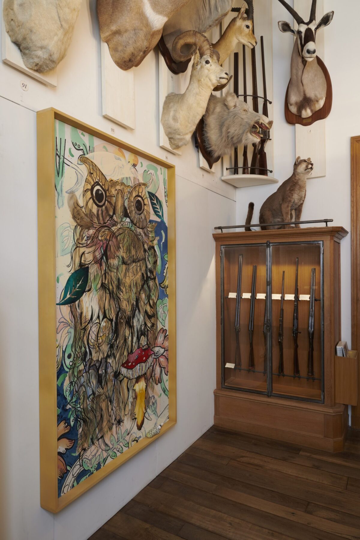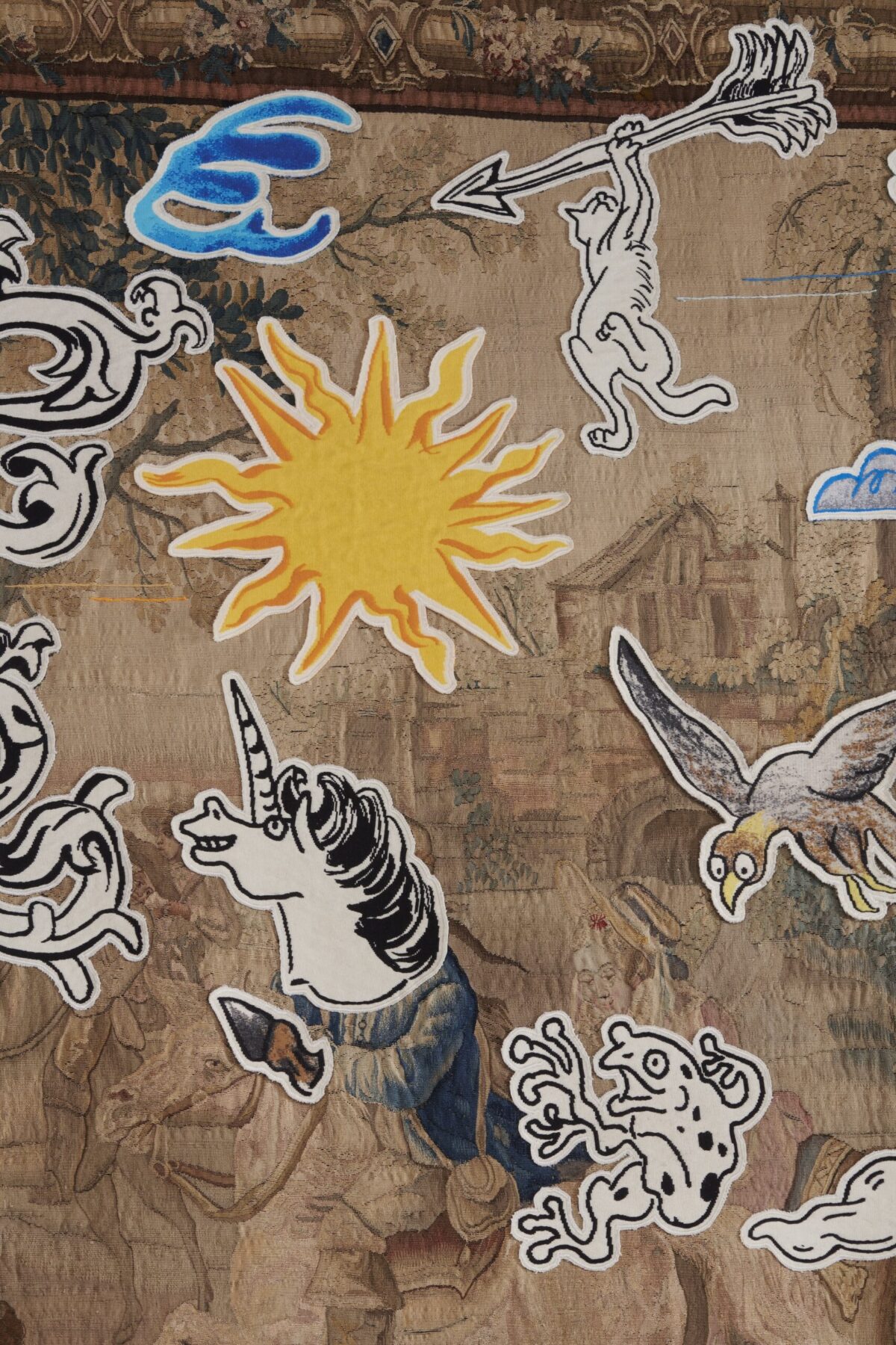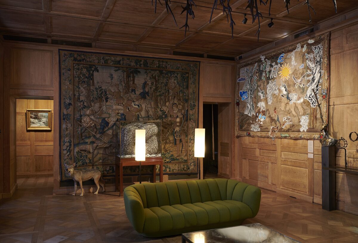 This approach dramatised marks the start of start of a more comprehensive project, which is a14> unfolds through the different floors of the museum. Conceived as a series of tributes and reinterpretations, the intervention artistic takes over the walls, the furniturethe tapestries, using the unique museography of the Museum of HuntingNature as a domestic space to extend.