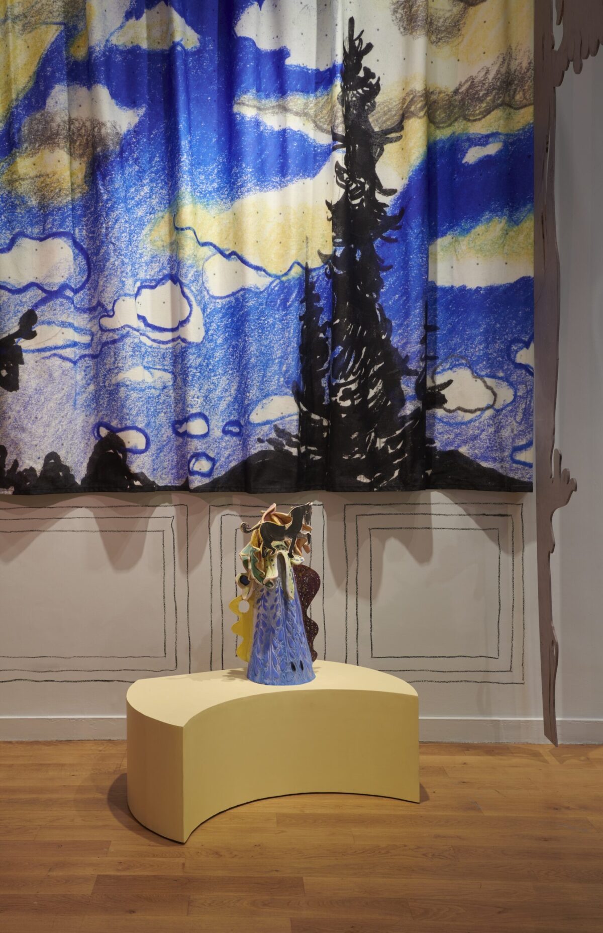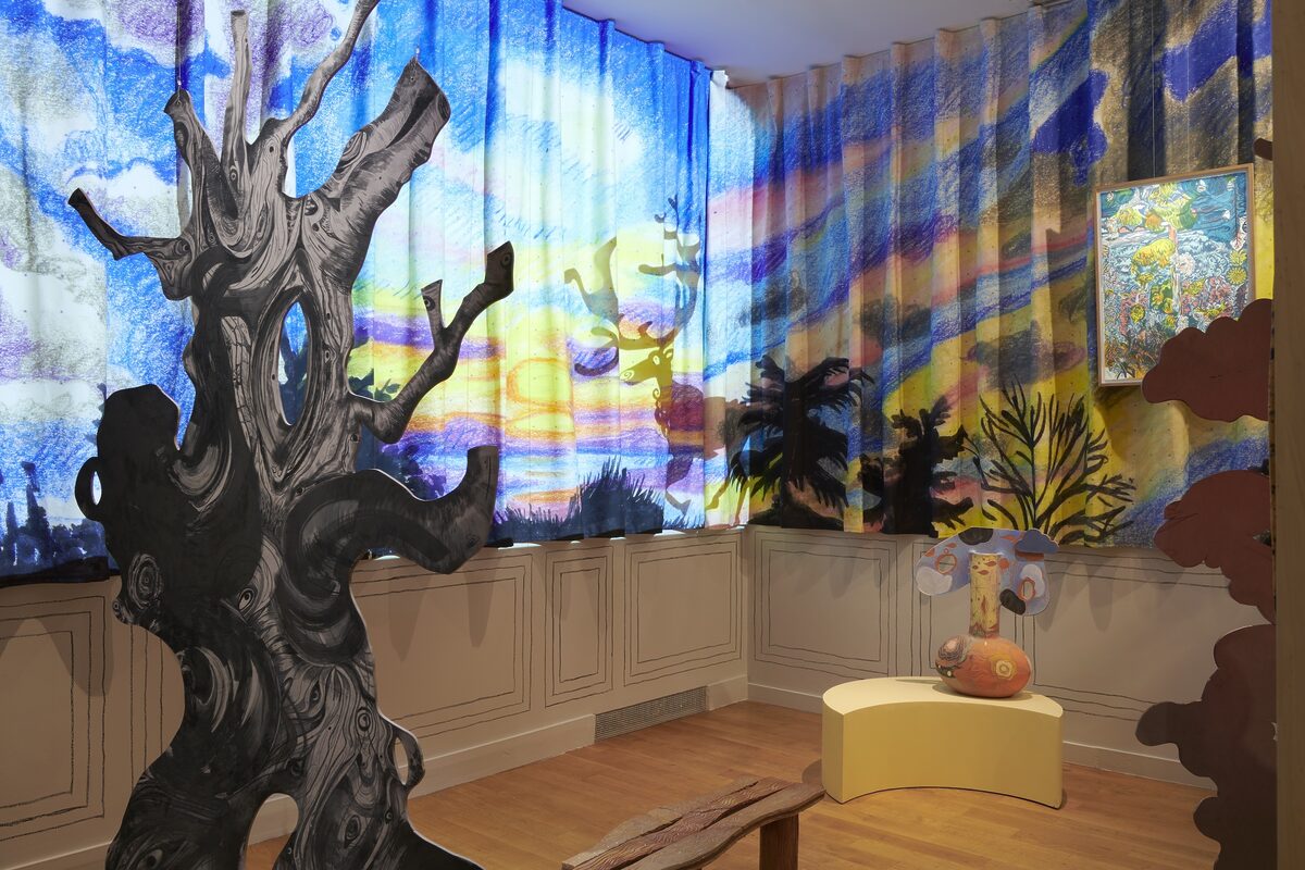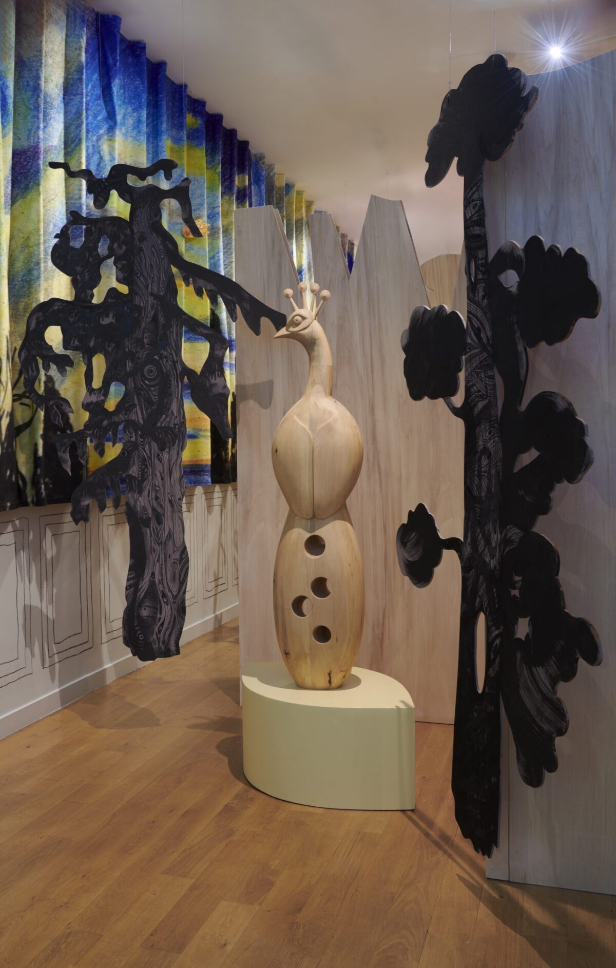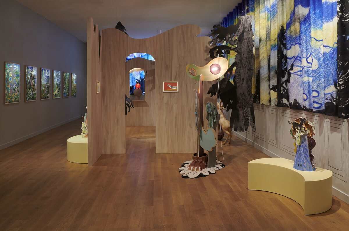 For this exhibition, immersive environments are constructed in which each room is transformed into a microcosm becomes a microcosm inhabited by animals, hybrid figures and abstract forms. The exhibition transports the a visitor to a universe poetic in which the imagination is becomes the place of encounter between humans and non-humans.