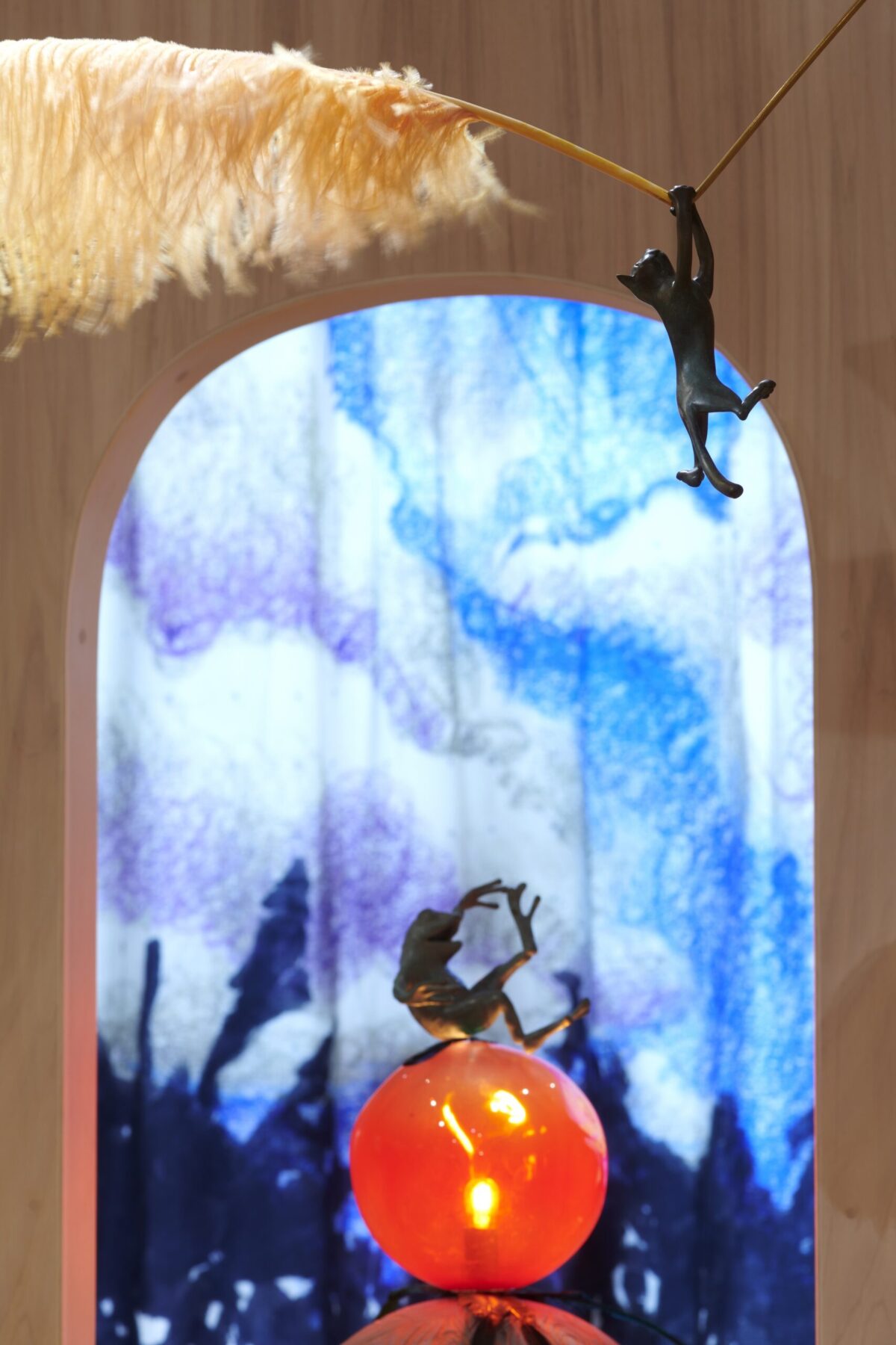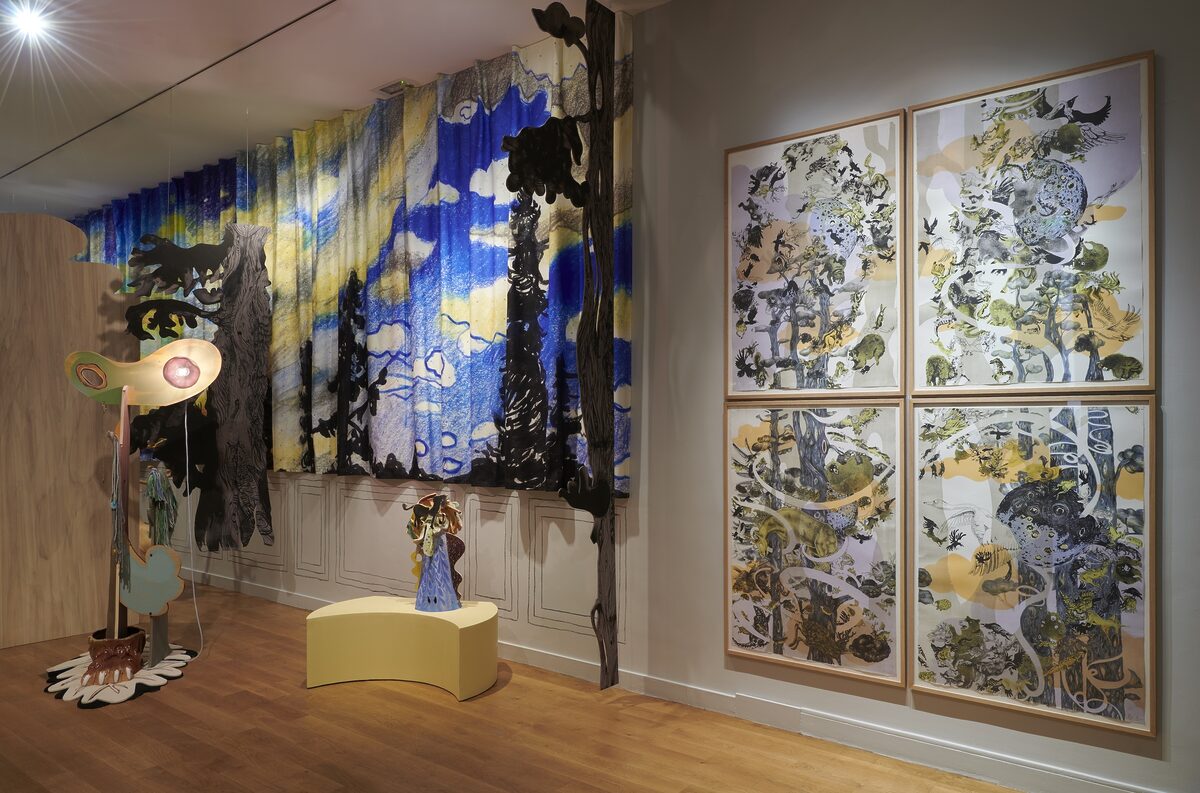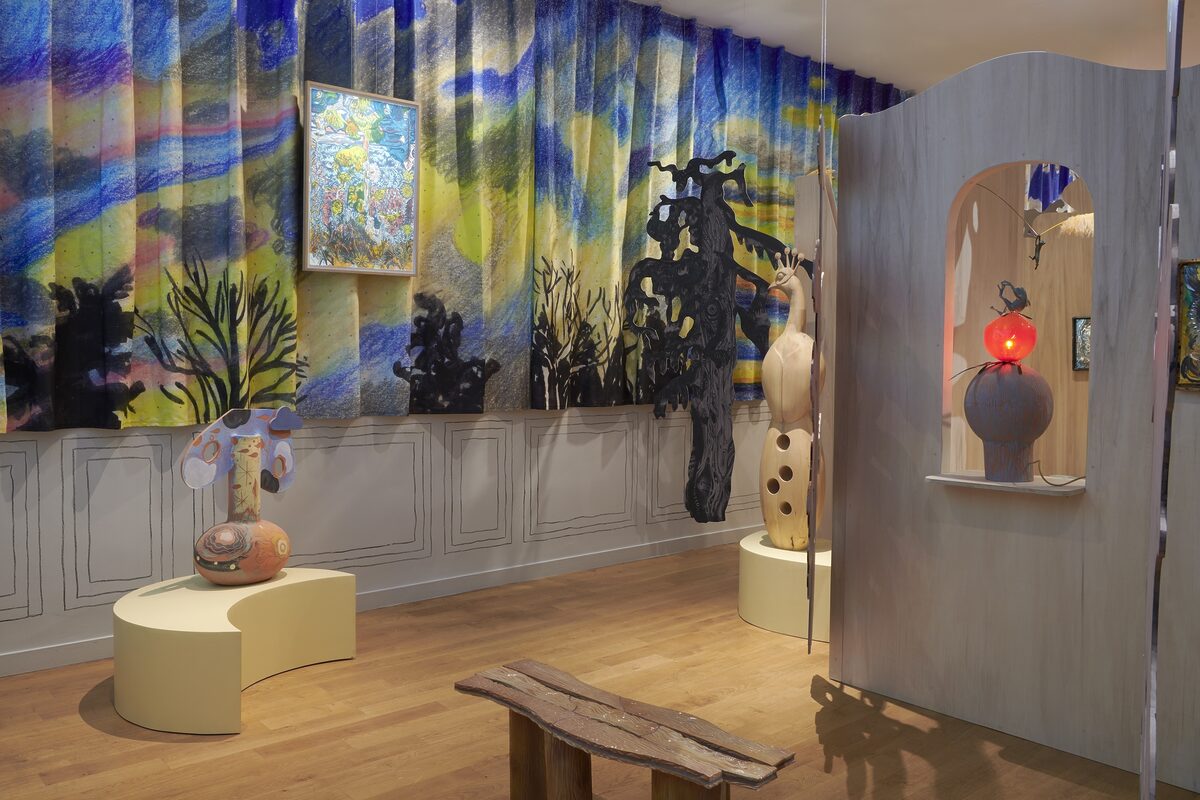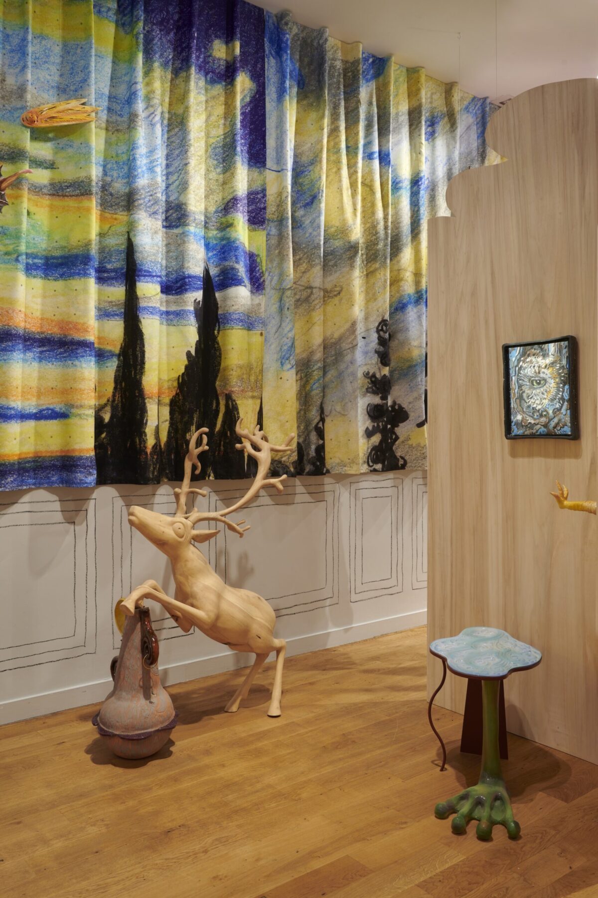 For this exhibition, immersive environments are constructed in which each room is transformed into a microcosm becomes a microcosm inhabited by animals, hybrid figures and abstract forms. The exhibition transports the a visitor to a universe poetic in which the imagination is becomes the place of encounter between humans and non-humans.