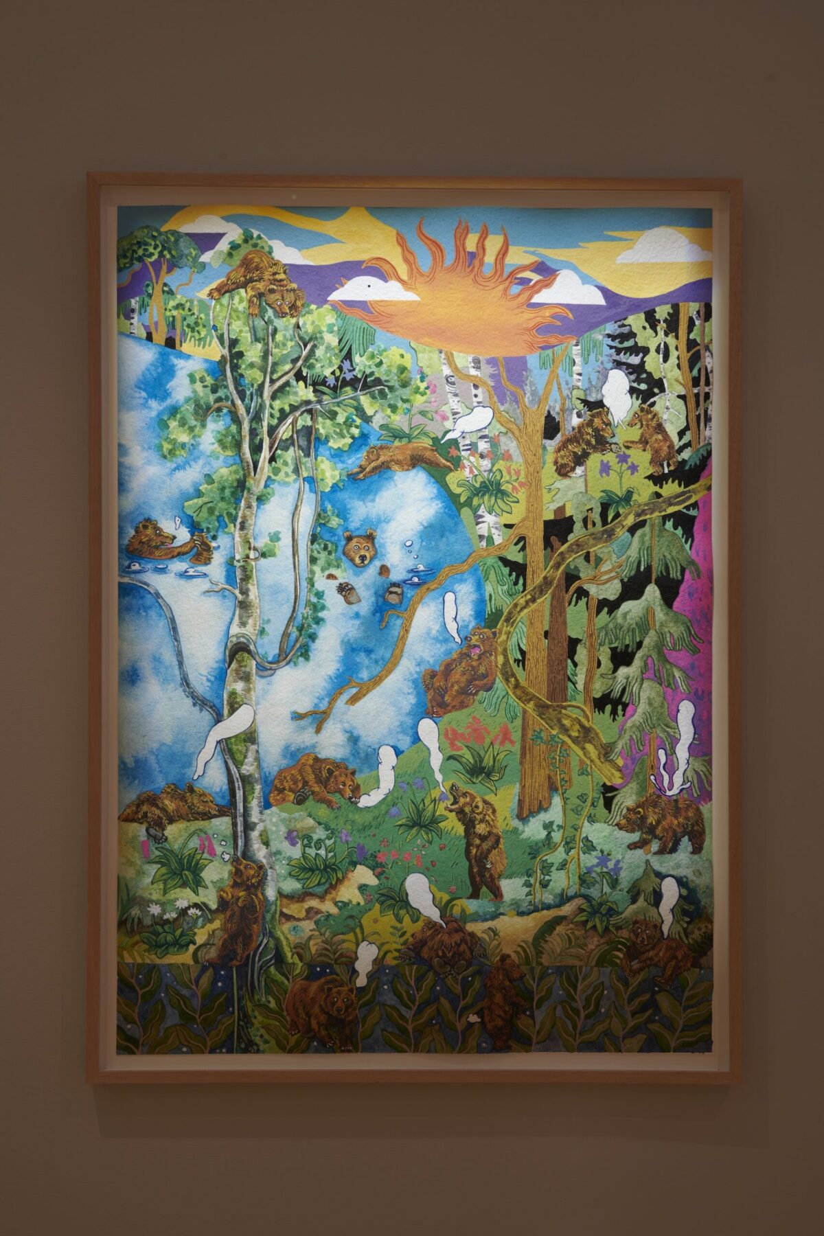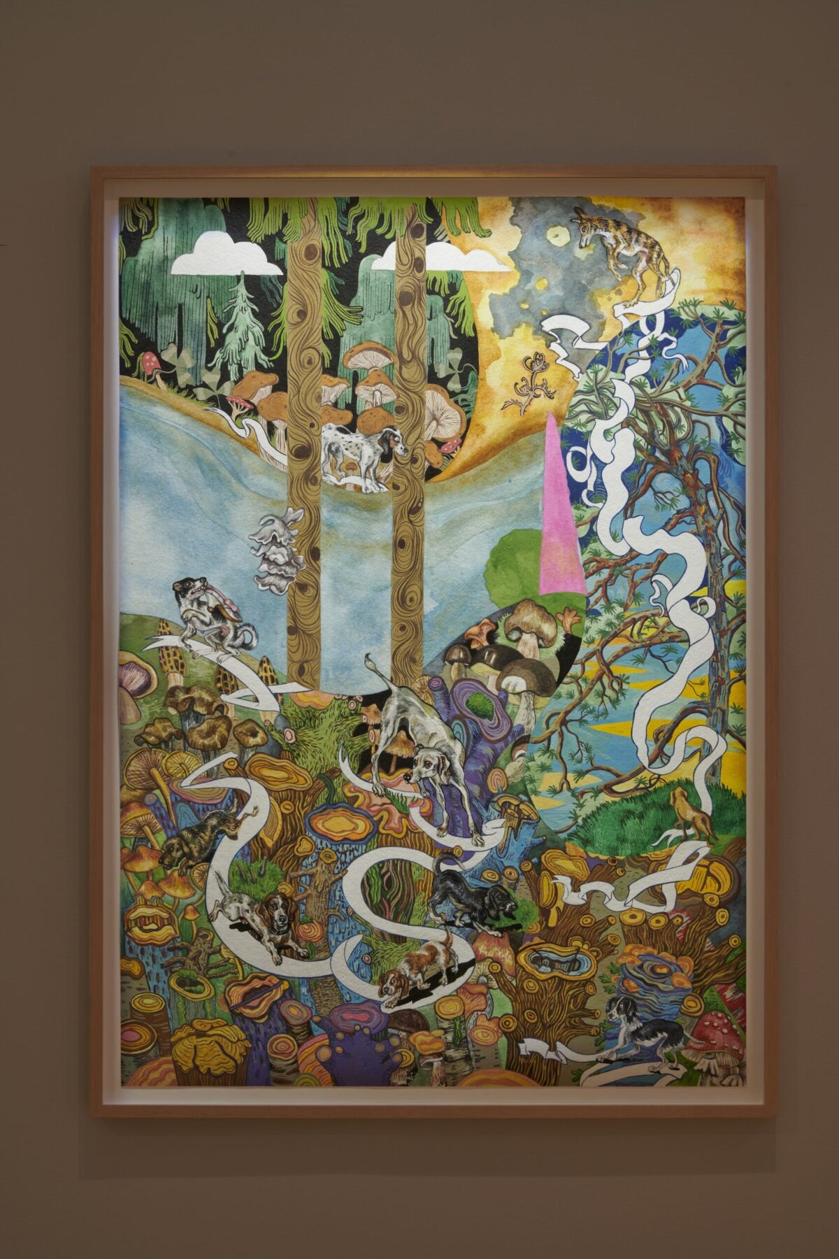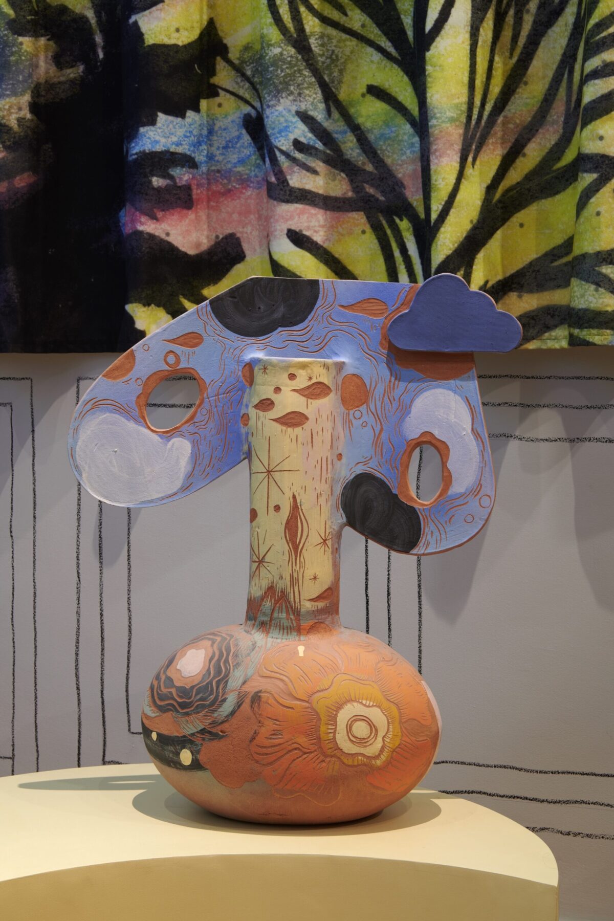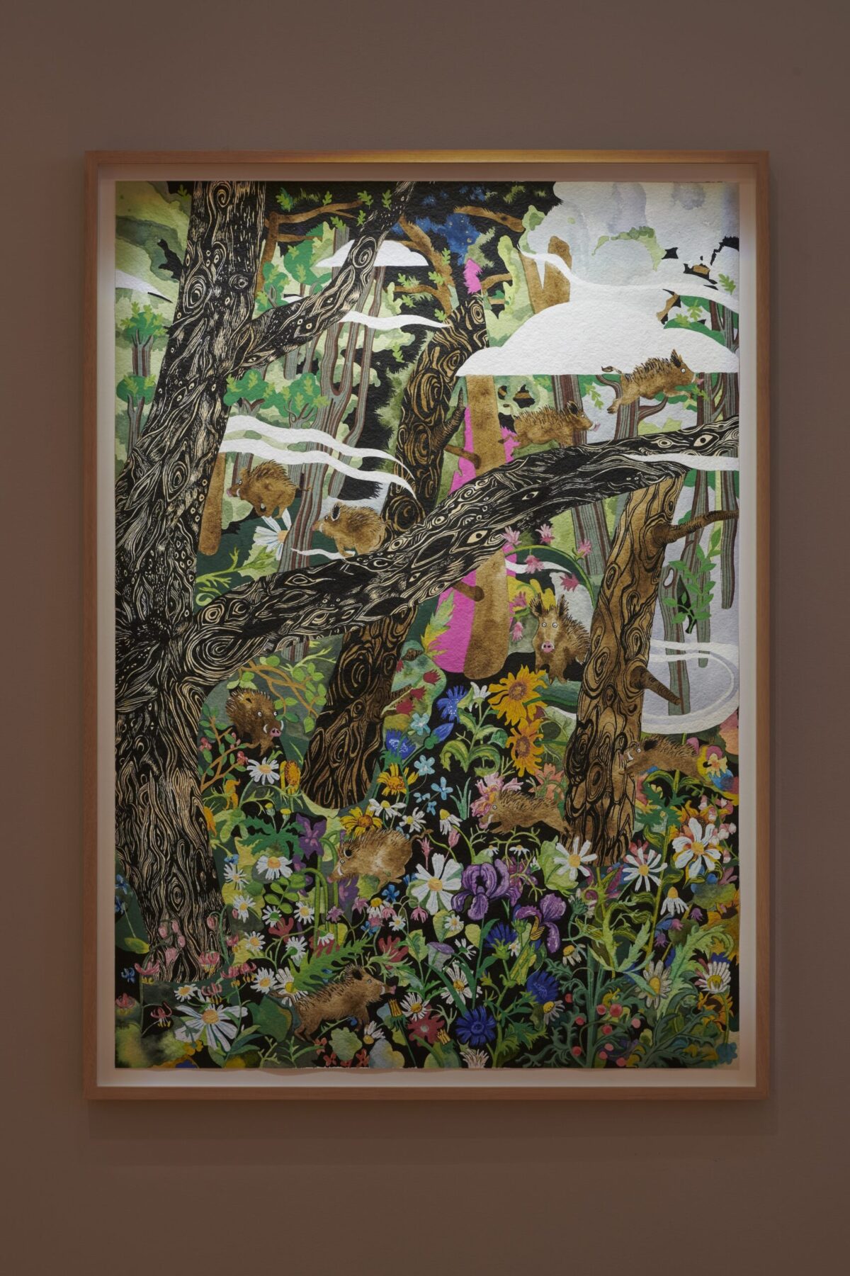 For this exhibition, immersive environments are constructed in which each room is transformed into a microcosm becomes a microcosm inhabited by animals, hybrid figures and abstract forms. The exhibition transports the a visitor to a universe poetic in which the imagination is becomes the place of encounter between humans and non-humans.
