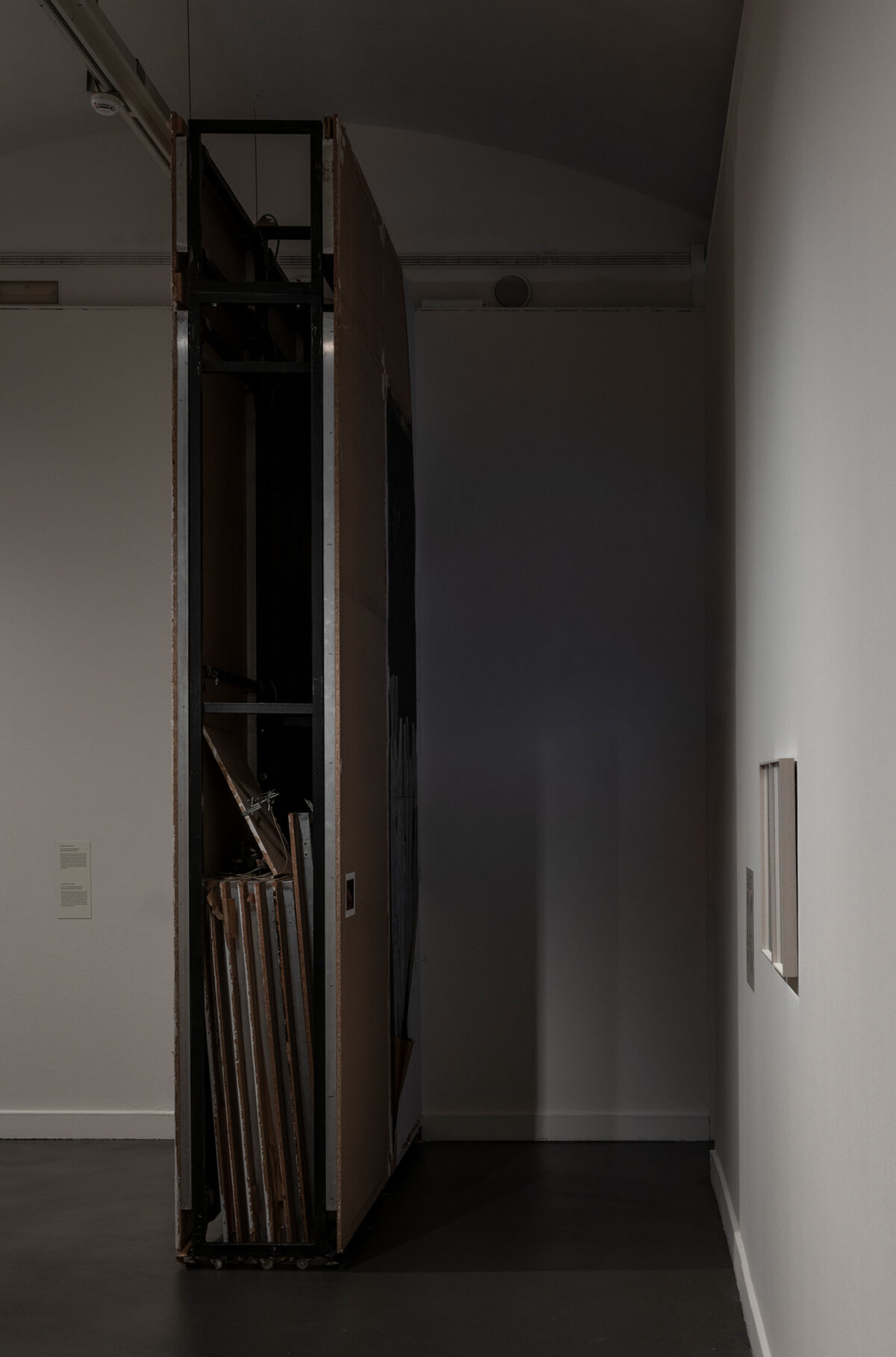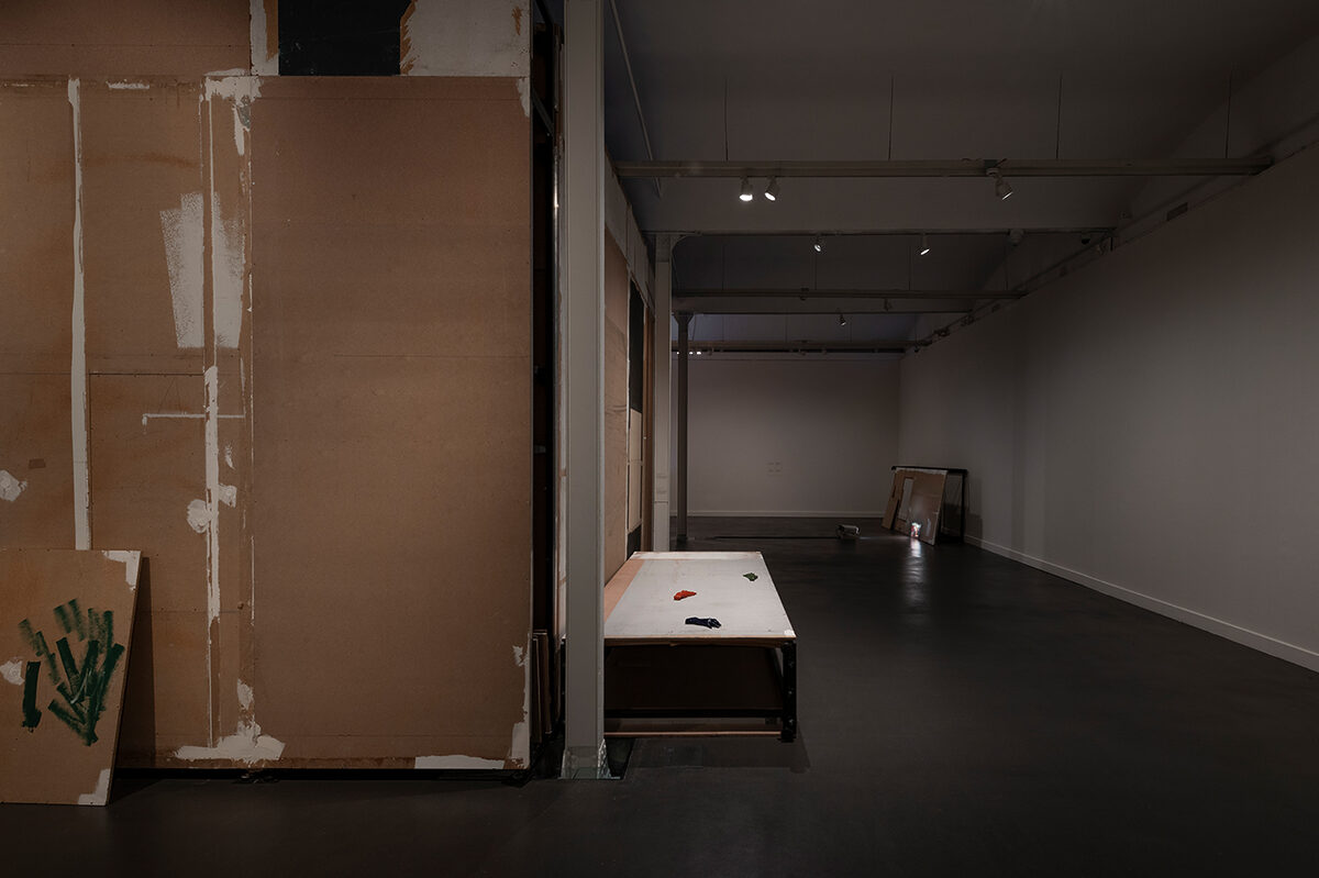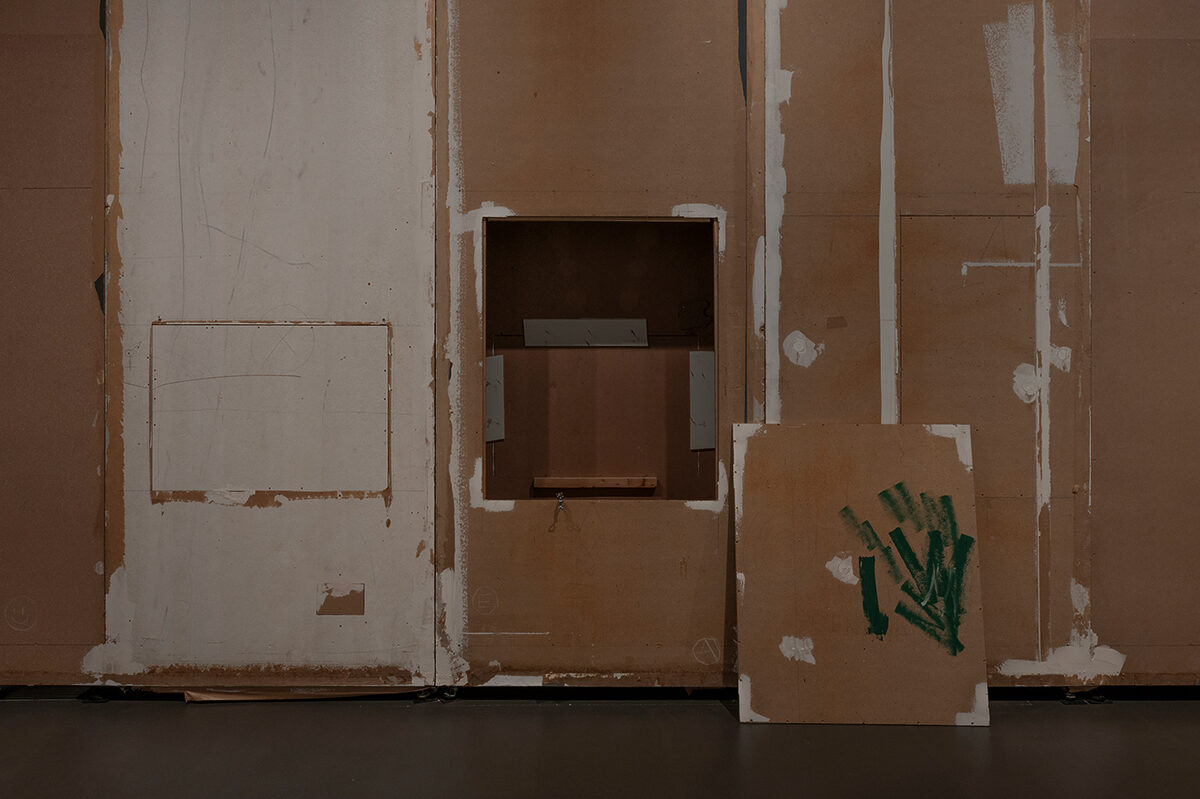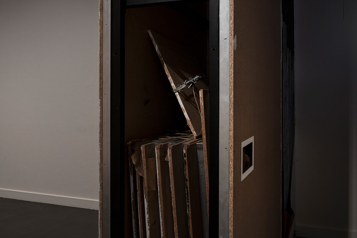 Diametrically opposed to this film, Reynolds presents a new short film that places the viewer in the uneasy position of an interviewee. Second Person, Third Person (2023) stems from an ongoing research on the centrality of narrative in the institutional bureaucracy surrounding asylum law. Based on the transcription of an interview held at the French Office for the Protection of Refugees and Stateless Persons, this film paints a disturbing picture of state apparatuses and offers a reflection on the enormous power of storytelling on the actual lives of its protagonists. The exhibition weaves together recent works in which Reynolds interrogates the idea of the portrait in order to go beyond the supremacy of the visual. A series of grotesque hands made of clay, modelled solely through touch, embody Theo, former flatmate of the artist. One hand portrays another, without resorting to the sense of vision. Likewise, a group of customised tuning forks dotted throughout the show capture the unique voice pitch of Justine, a friend of Reynolds’, making the exhibition’s bare construction materials and modular panels ring.