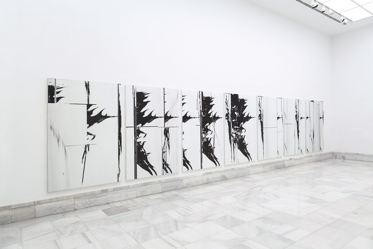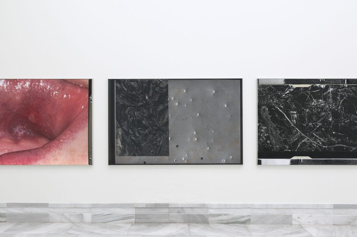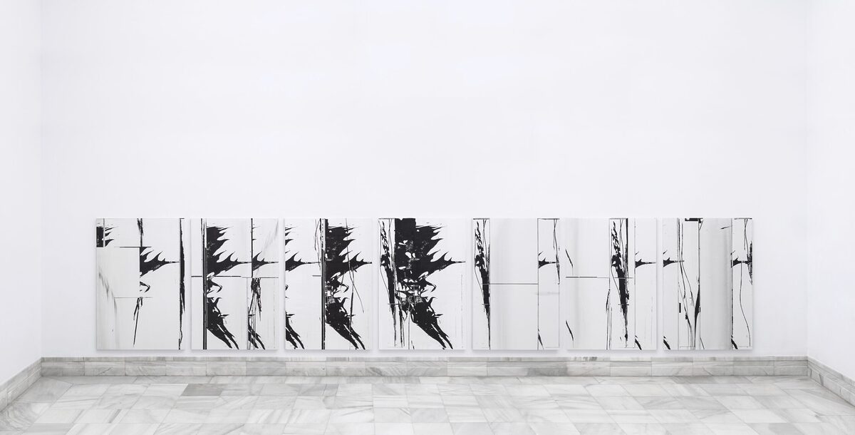 We continue to find their traces of xenomorphic hunting in the 7 paintings of menacing and wild forms, such as the flight of a bat captured by a camera in the light of a strobe.