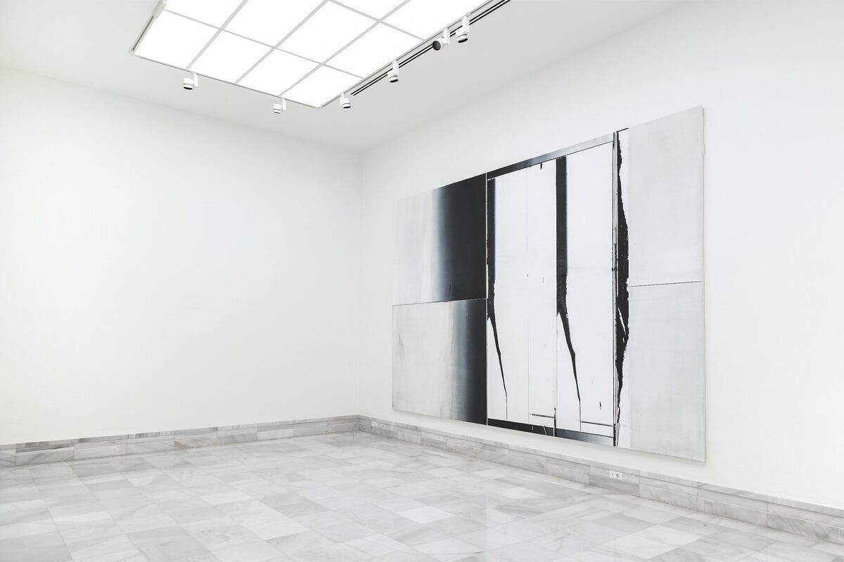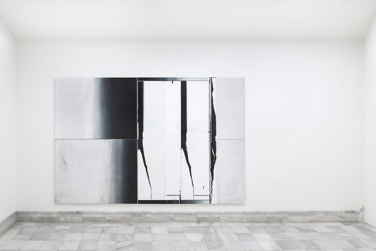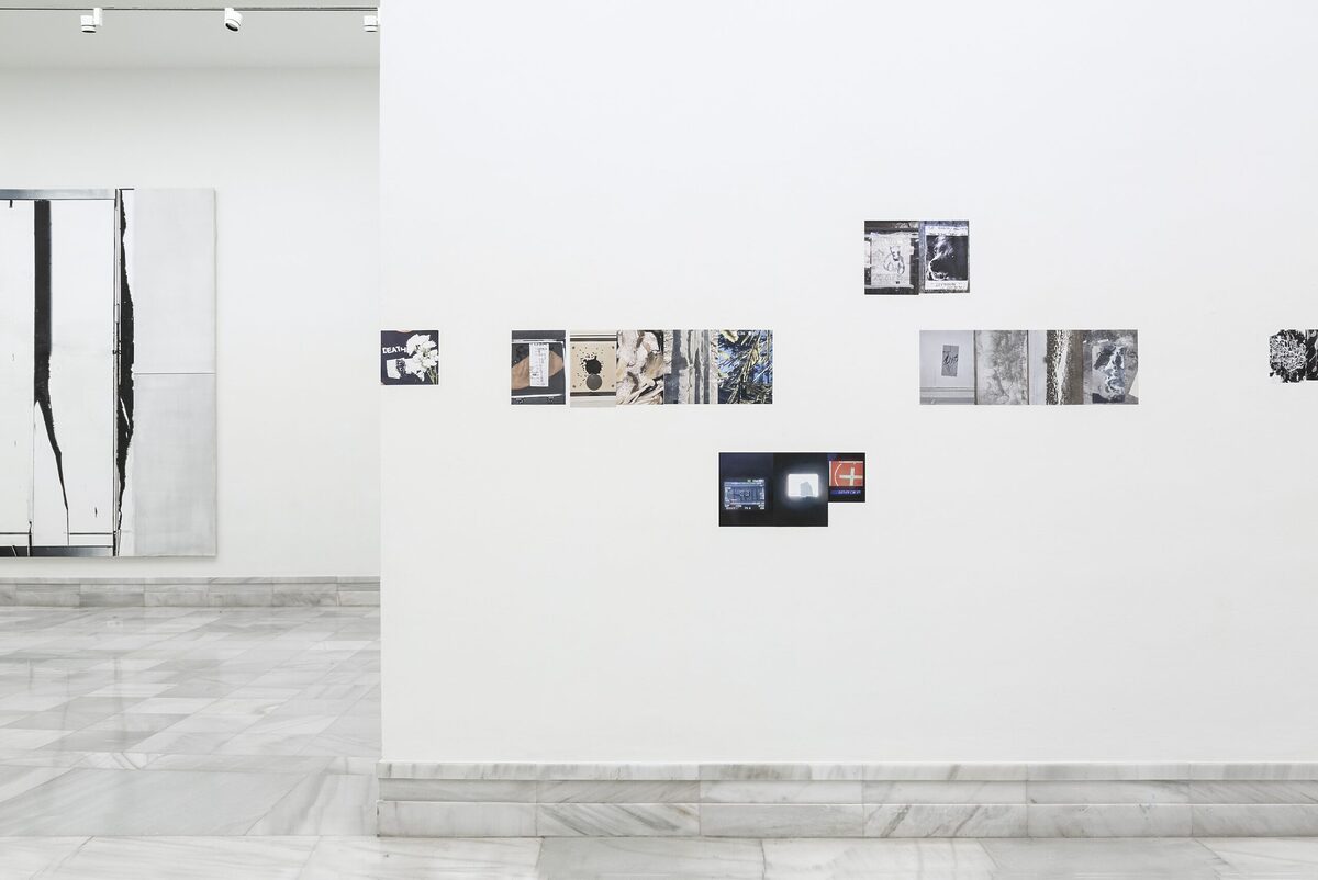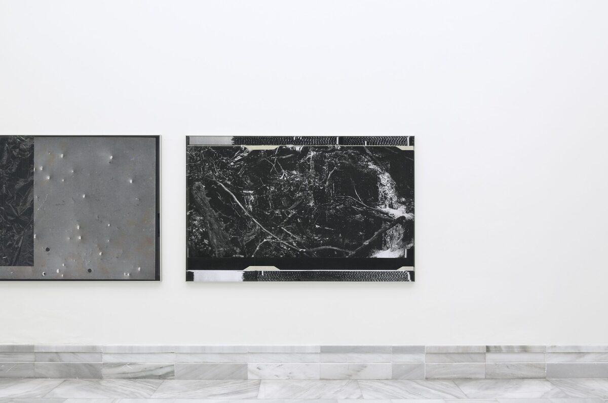 It seems impossible to reconnect with referents after this painting, but the framed photographs reconnect us with dramatic but moving events such as those tyres burst by speed and anger, what could be more beautiful than a landscape turned into its own spectral apparitions of bitter victory.