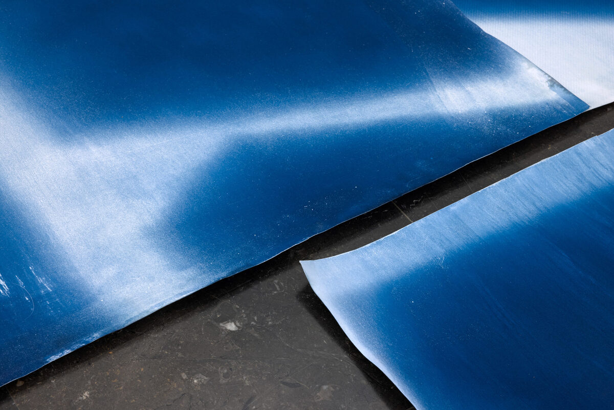 Luz de la mañana (serie), 2026. Siete cianotipias sobre papel. 250 x 113 cm (c.u). Detalle.