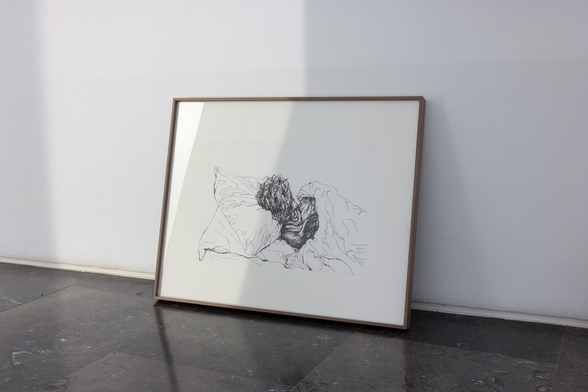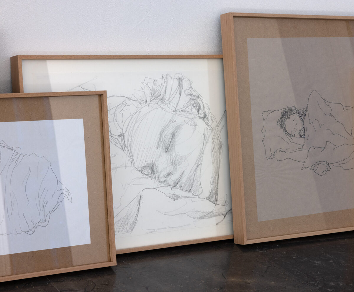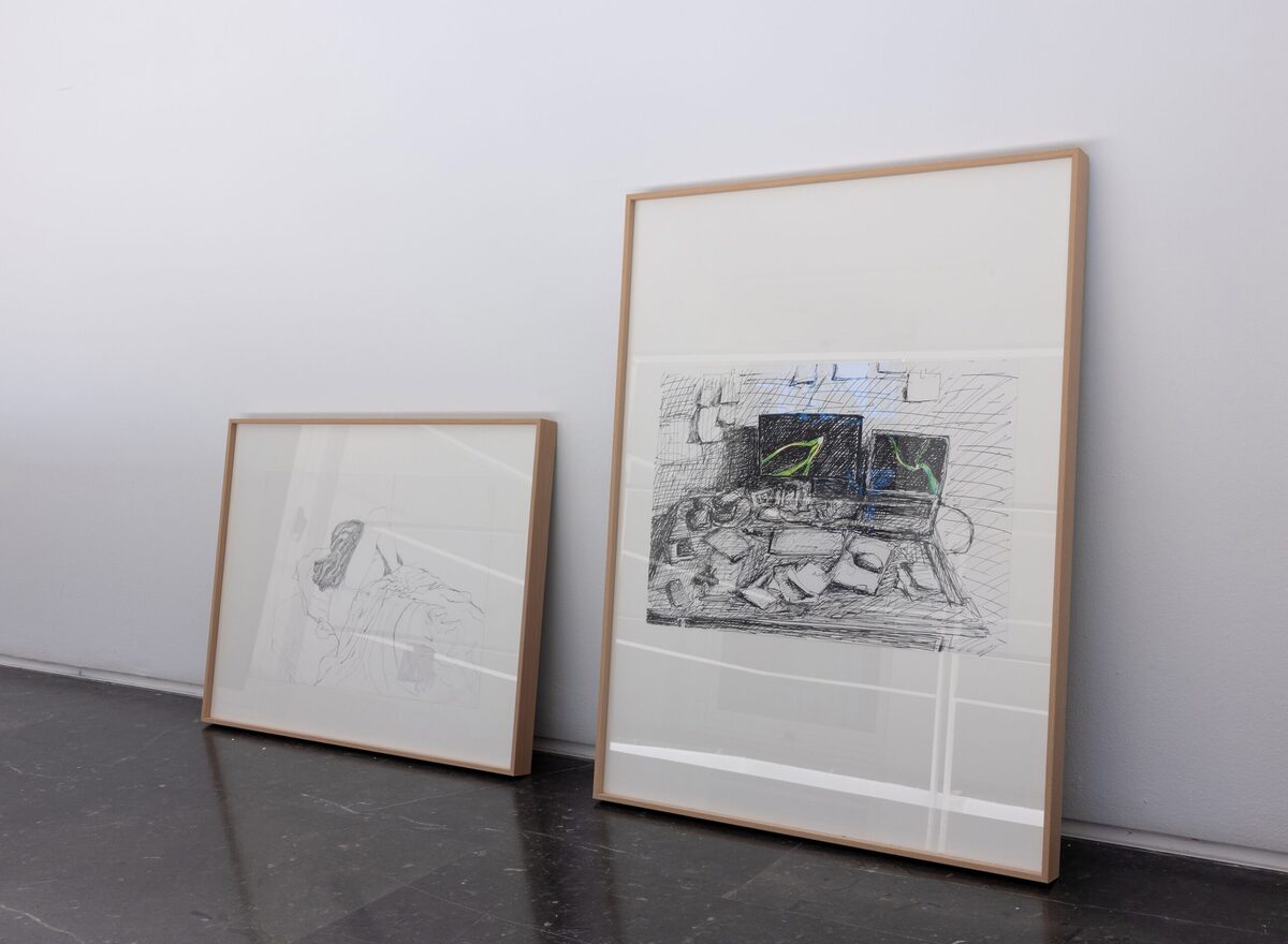 Durmientes, 2026. Lápiz o rotulador sobre papel, IMac customizado.