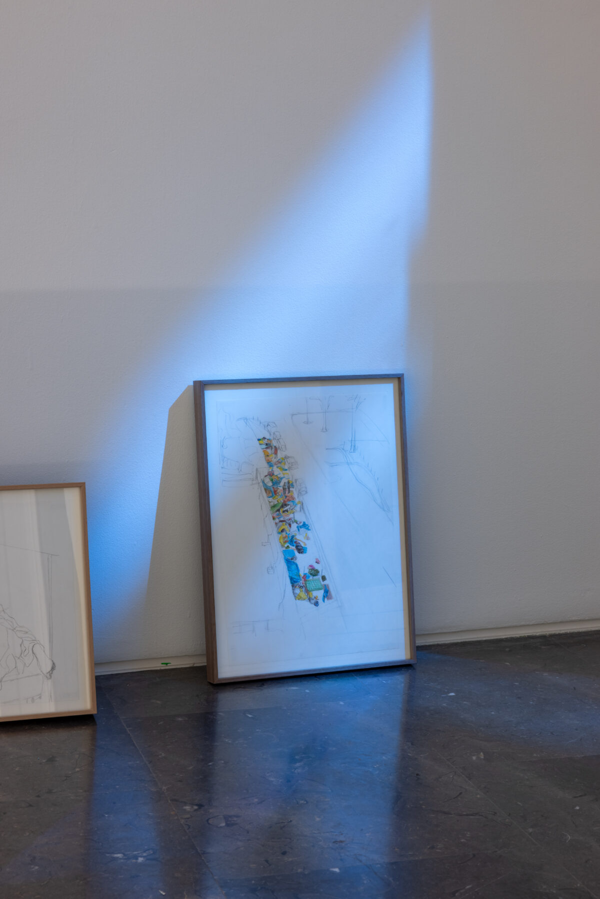 Durmientes, 2026. Lápiz o rotulador sobre papel, IMac customizado. Detalle.