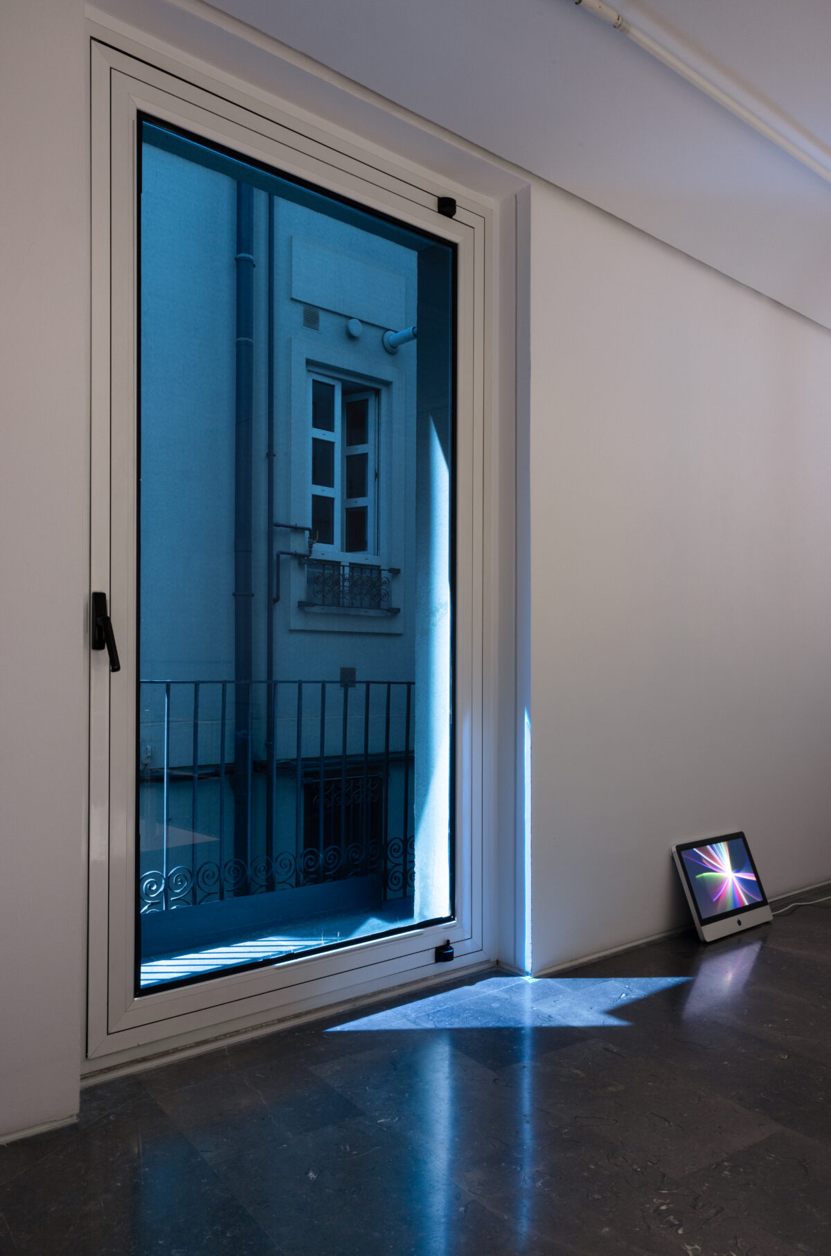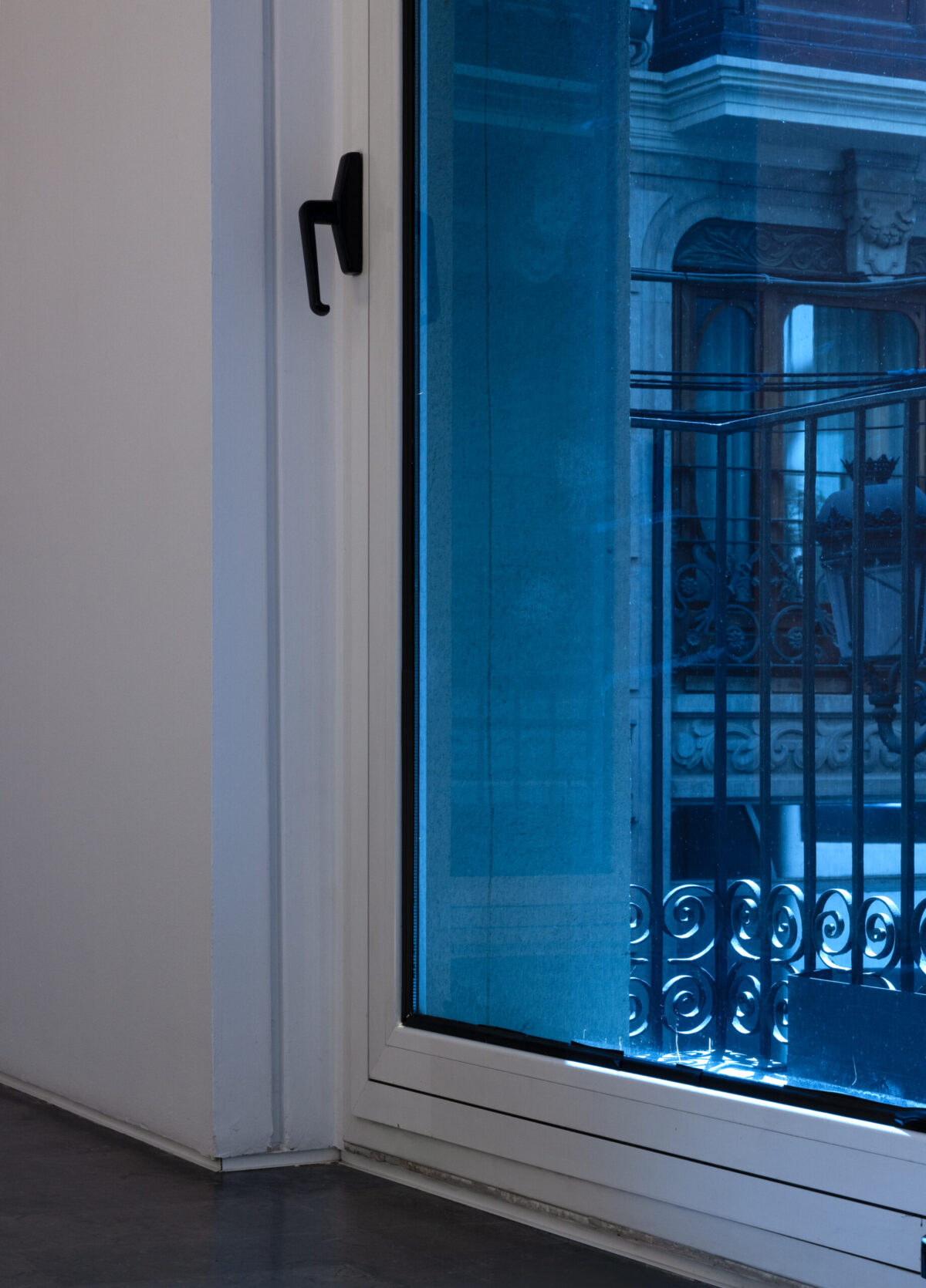 Noche americana, 2026. Filtro de color sobre ventana. Medidas variables. Detalle.