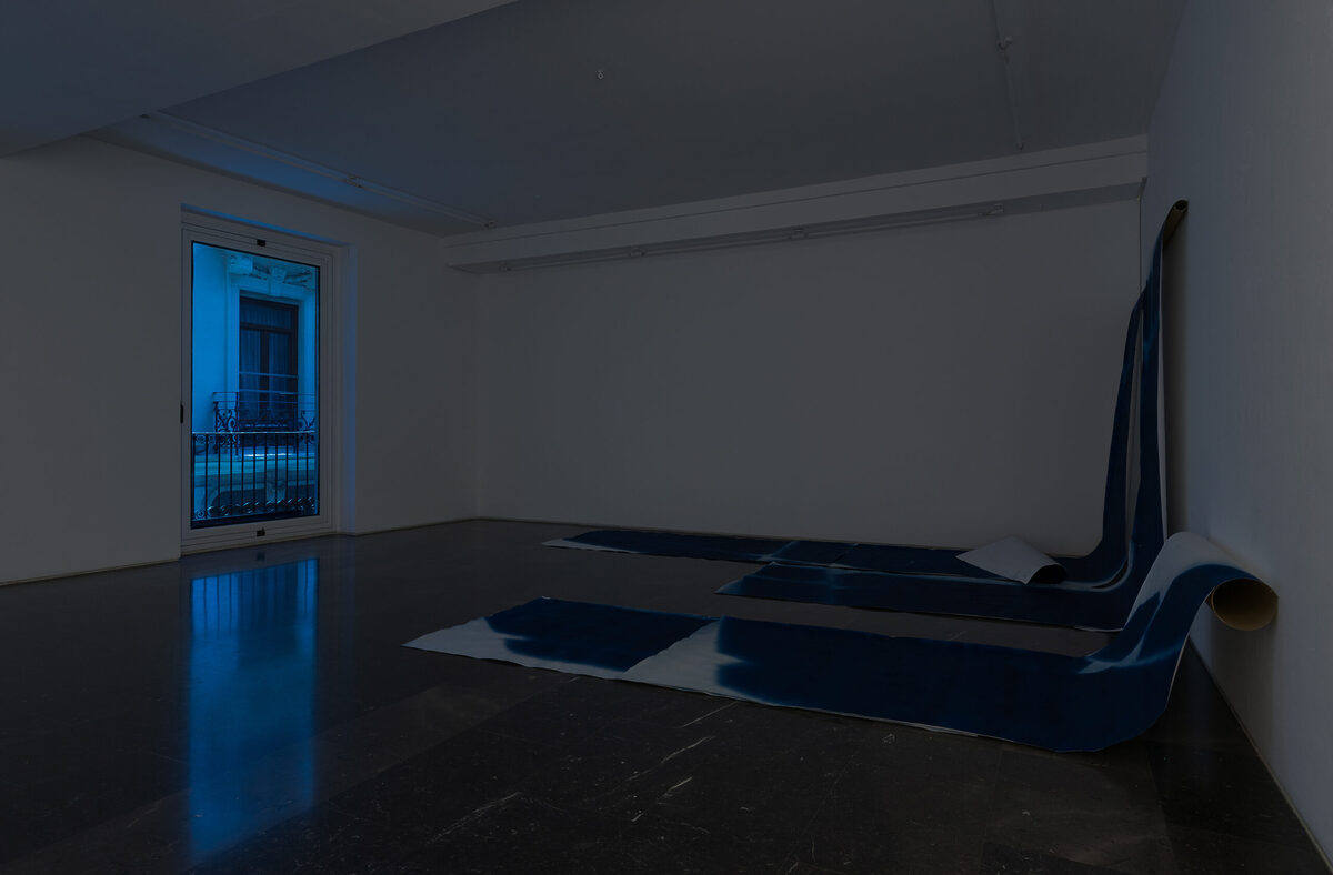 Luz de la mañana (serie), 2026. Siete cianotipias sobre papel. 250 x 113 cm (c.u).