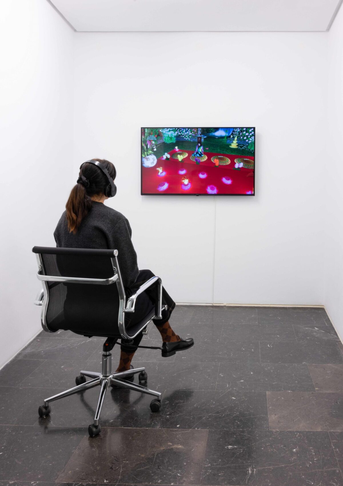 La exposición propone un recorrido por la obra de Ana Esteve Reig en torno a las imágenes producidas por la tecnología, los modos actuales de construcción identitaria y la potencia transformadora de lo virtual. Su mirada establece una relación crítica y al mismo tiempo profundamente afectiva con los entornos digitales, entendiéndolos no como un espacio hedonista, sino como laboratorios sociales donde construir nuevas formas de subjetividad: deseos, miedos y mitologías. Su trabajo desestabiliza los regímenes de visibilidad contemporáneos, proponiendo nuevas formas de corporización y agencia en entornos mediados por el vídeo.