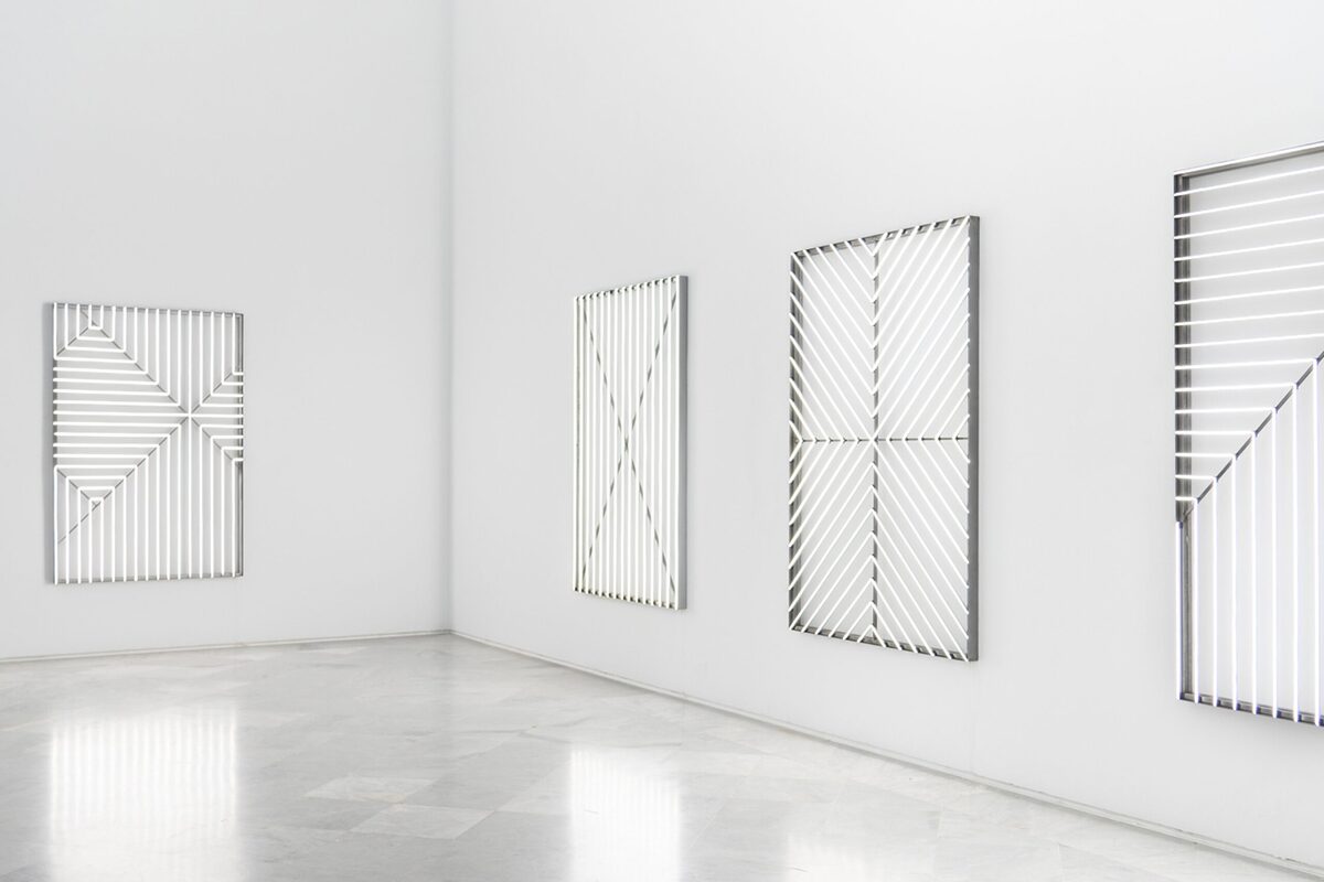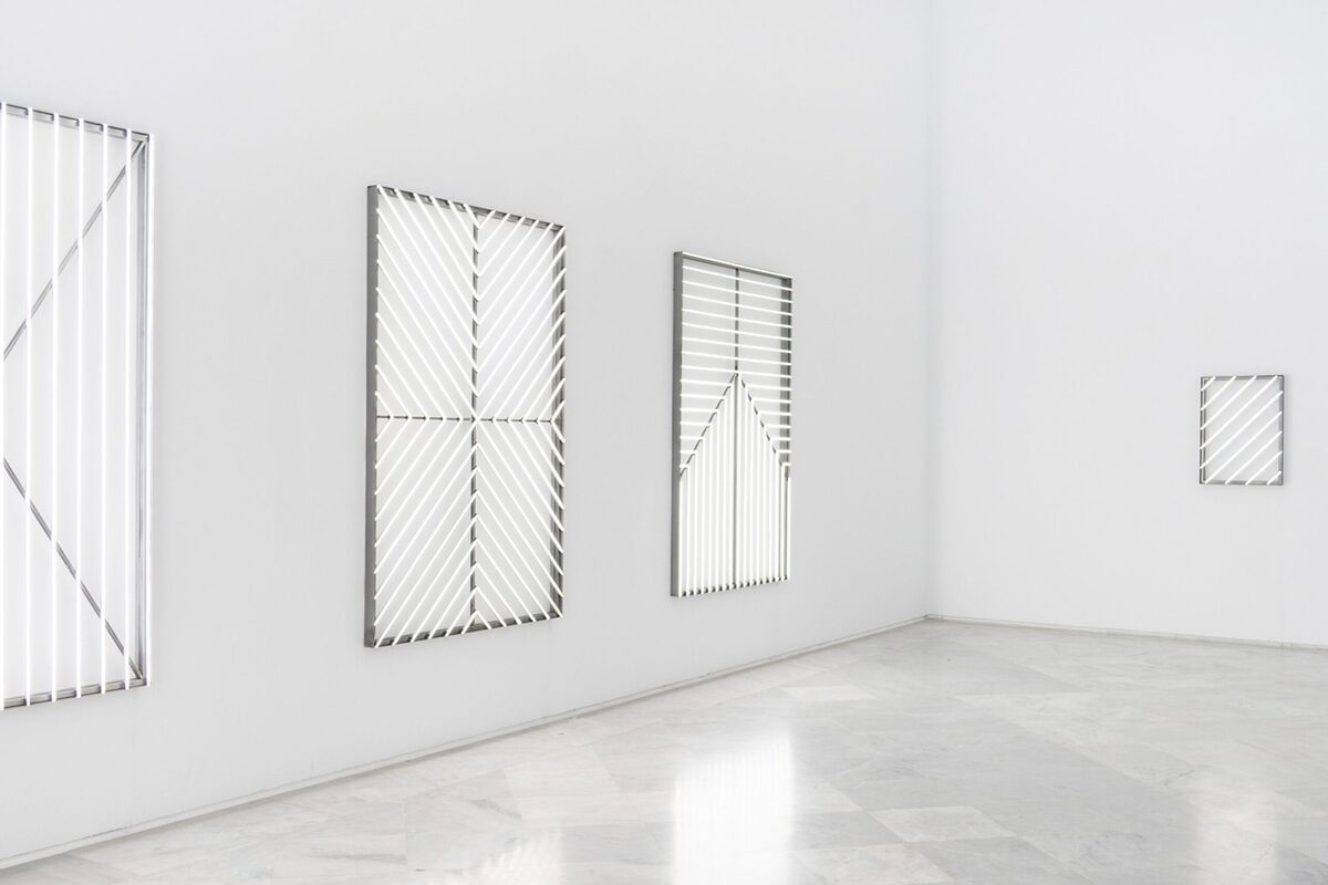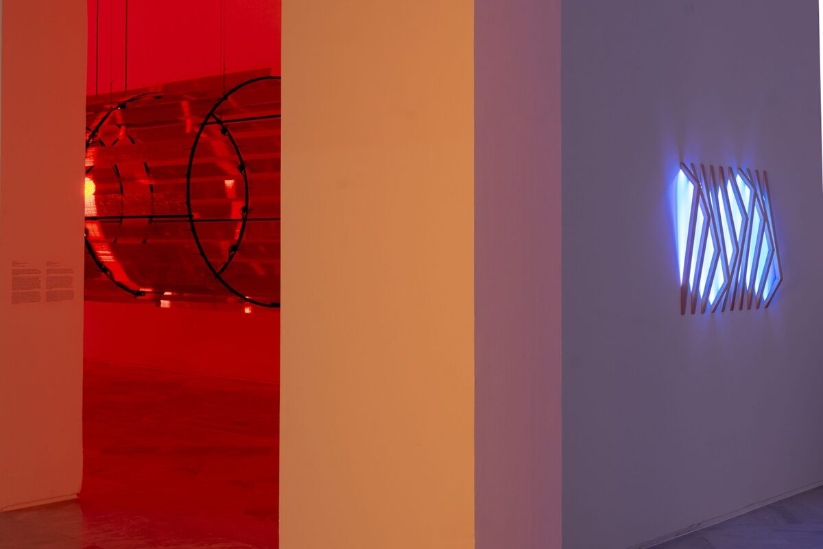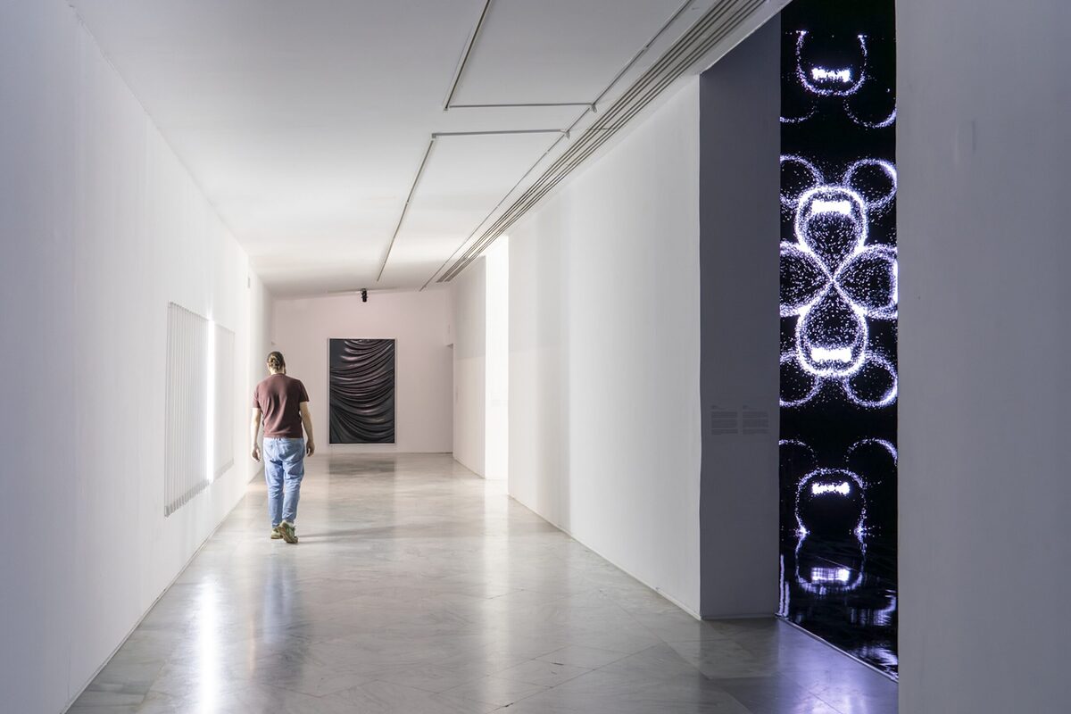 El recorrido de las salas es libre y se ha planteado como un juego de simetrías: la sala inicial, dedicada a la pintura, encuentra su reflejo en la que ocupan las piezas tituladas Retícula, donde la “pintura” se transforma en instalación. A su vez, la gran pieza cilíndrica roja, Redshift, dialoga con la instalación de la sala opuesta, Solitude, que cierra el círculo de la exposicion. Entre esos extremos se despliegan obras que dibujan un recorrido casi especular, en el que el visitante puede circular con libertad y activar algunas de las piezas, estableciendo una conexión personal con ellas.