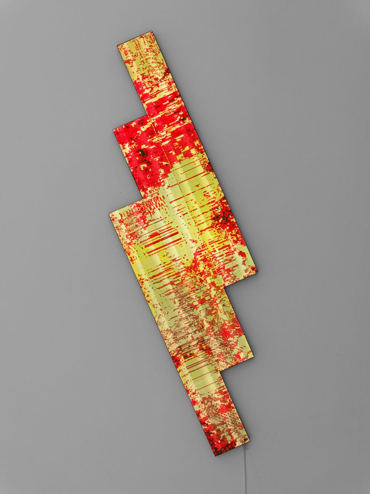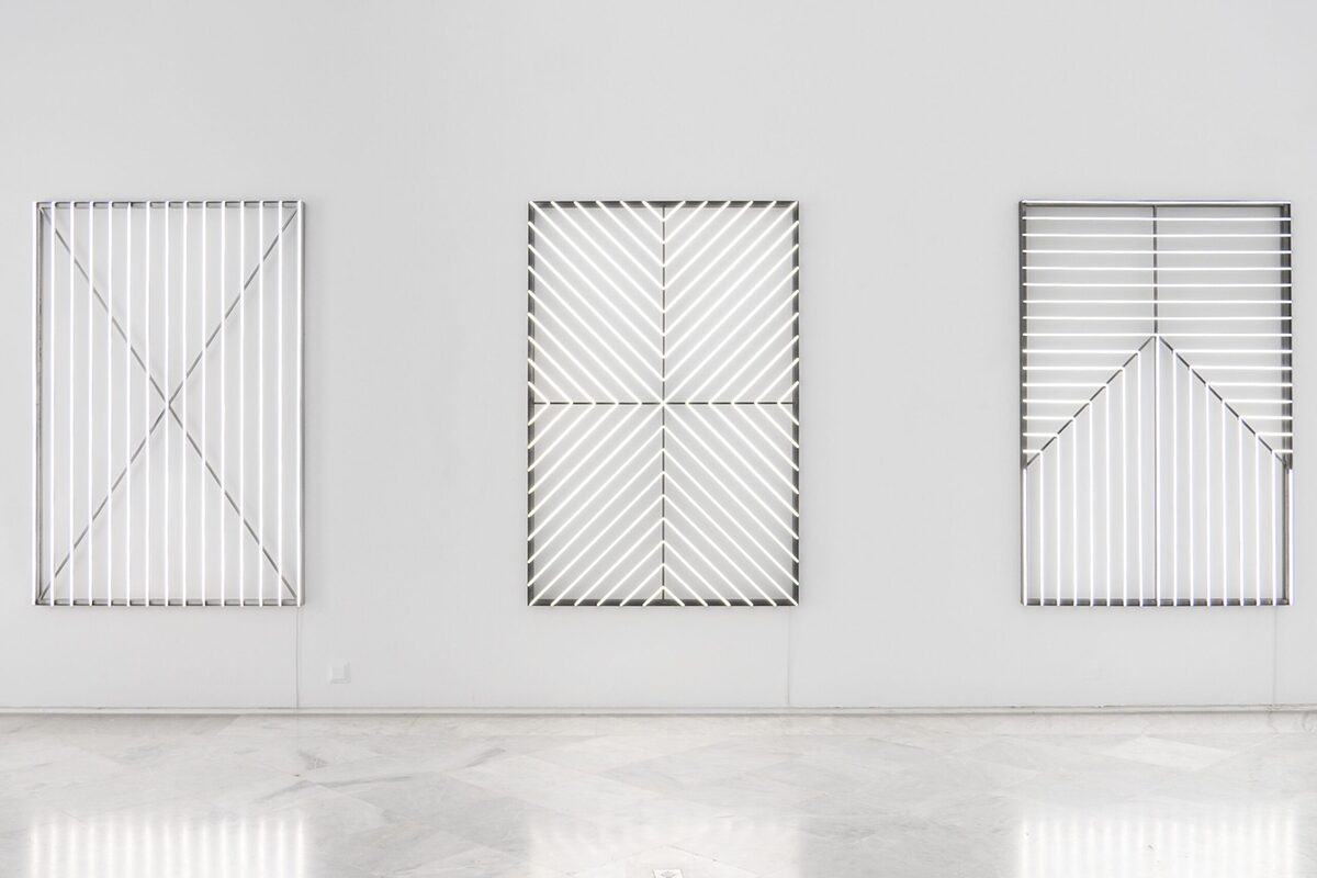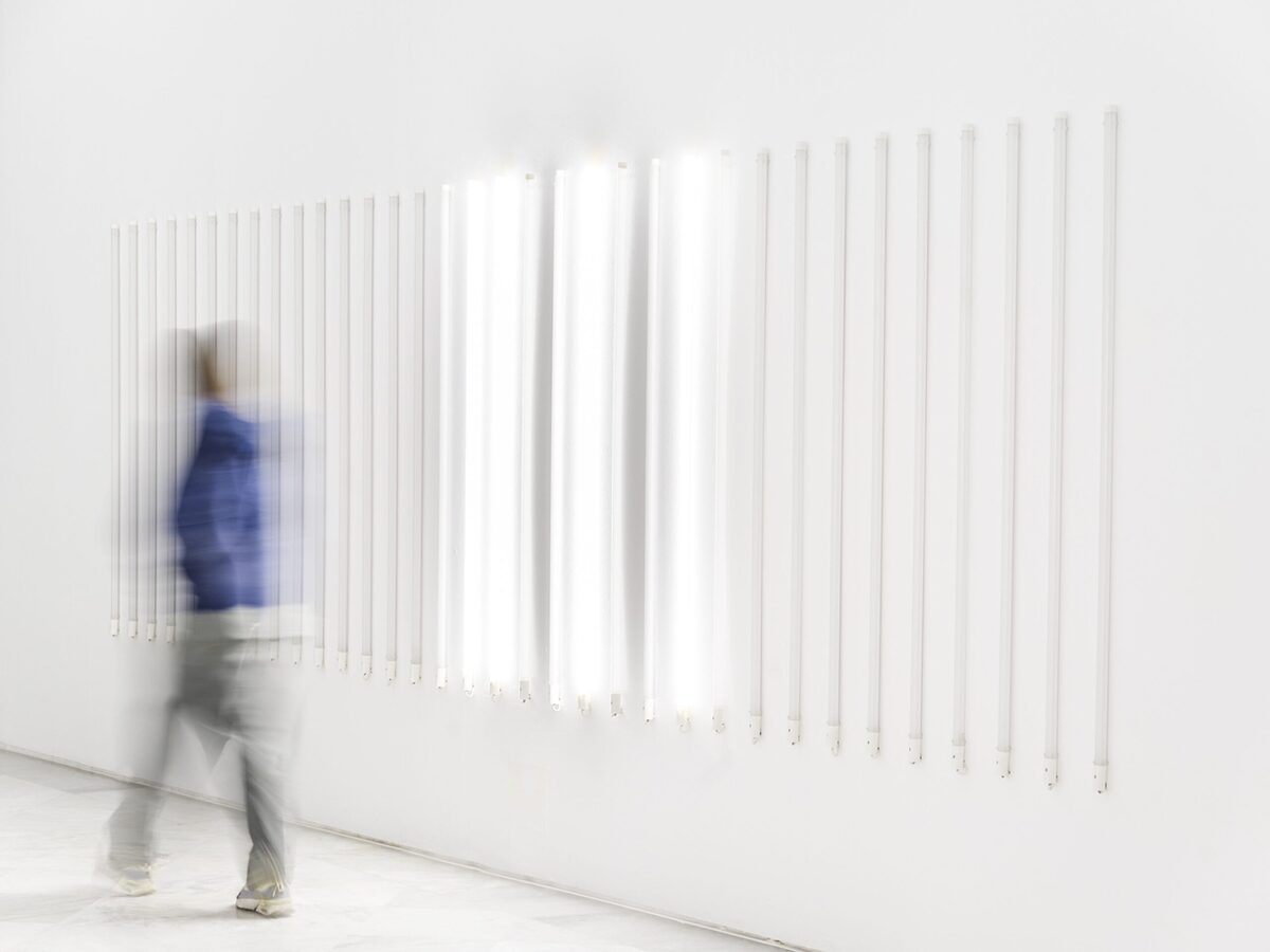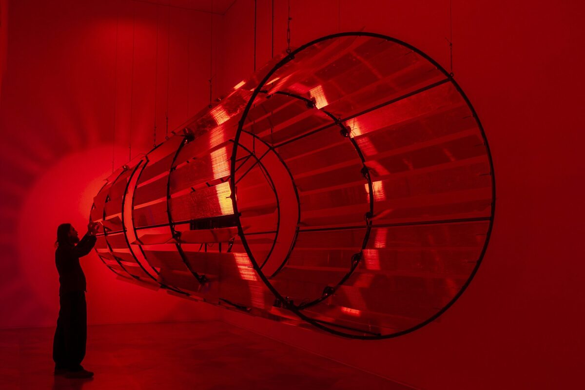 El recorrido de las salas es libre y se ha planteado como un juego de simetrías: la sala inicial, dedicada a la pintura, encuentra su reflejo en la que ocupan las piezas tituladas Retícula, donde la “pintura” se transforma en instalación. A su vez, la gran pieza cilíndrica roja, Redshift, dialoga con la instalación de la sala opuesta, Solitude, que cierra el círculo de la exposicion. Entre esos extremos se despliegan obras que dibujan un recorrido casi especular, en el que el visitante puede circular con libertad y activar algunas de las piezas, estableciendo una conexión personal con ellas.